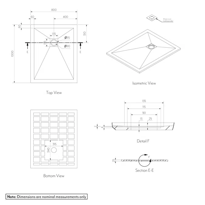 Compact 1000 x 800mm size suitable for diverse bathroom sizes