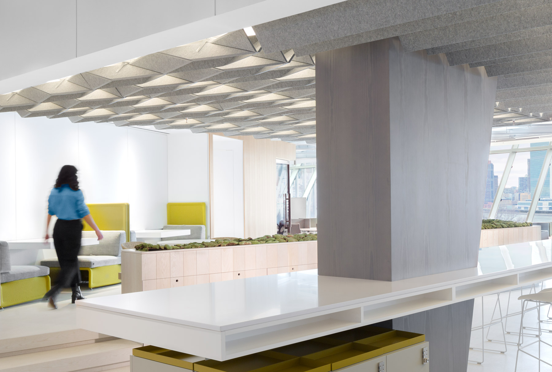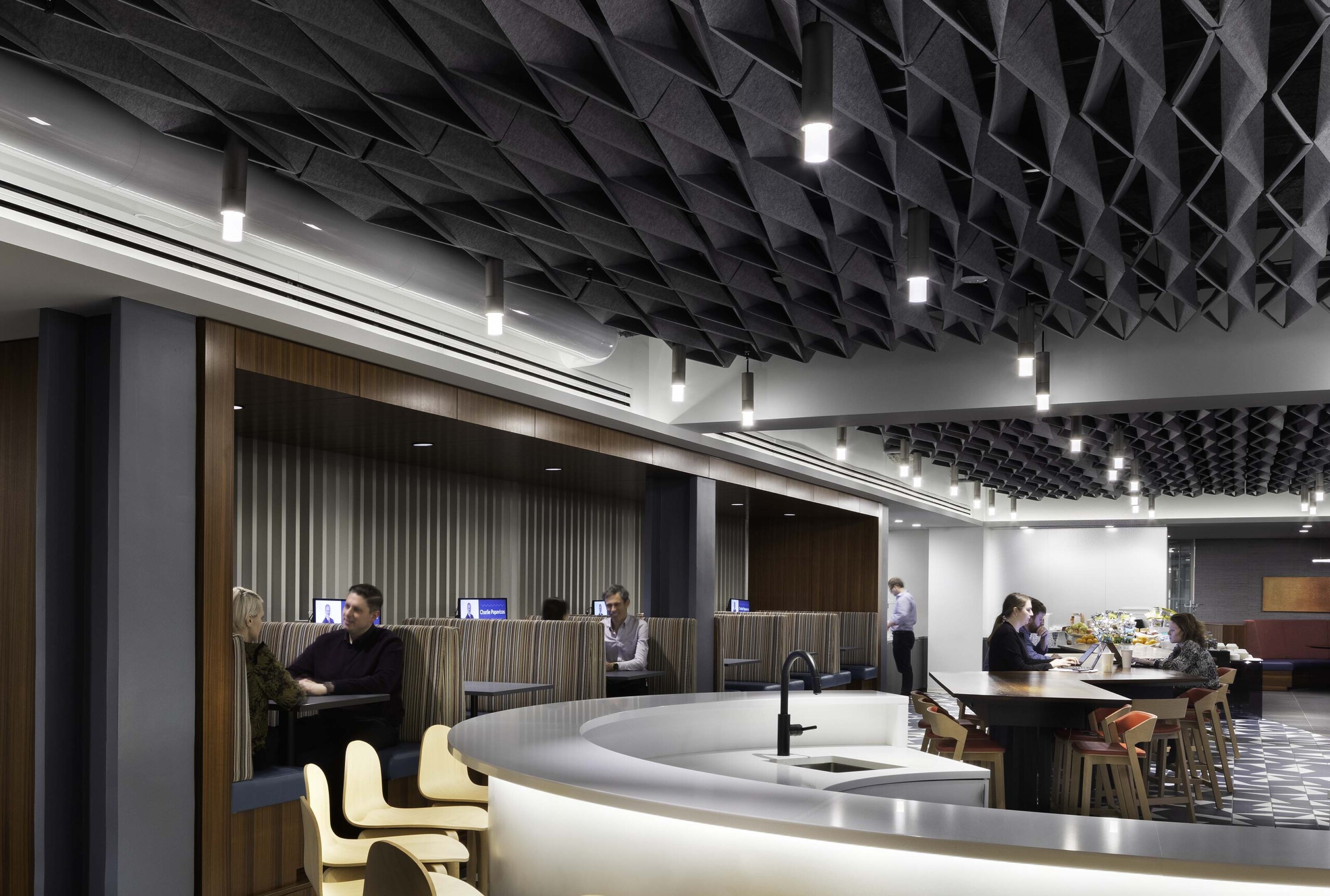 Discover the harmonious blend of style and sound management with NOWN's SoftFold®. Crafted from our innovative Asoft™ acoustical material, made from 100% PET plastic and featuring up to 60% recycled content, this unique ceiling baffle not only enhances your space's acoustics but also embraces sustainability. Its dimensional design allows for a captivating interplay of light and shadow, making it a stunning focal point in any environment.