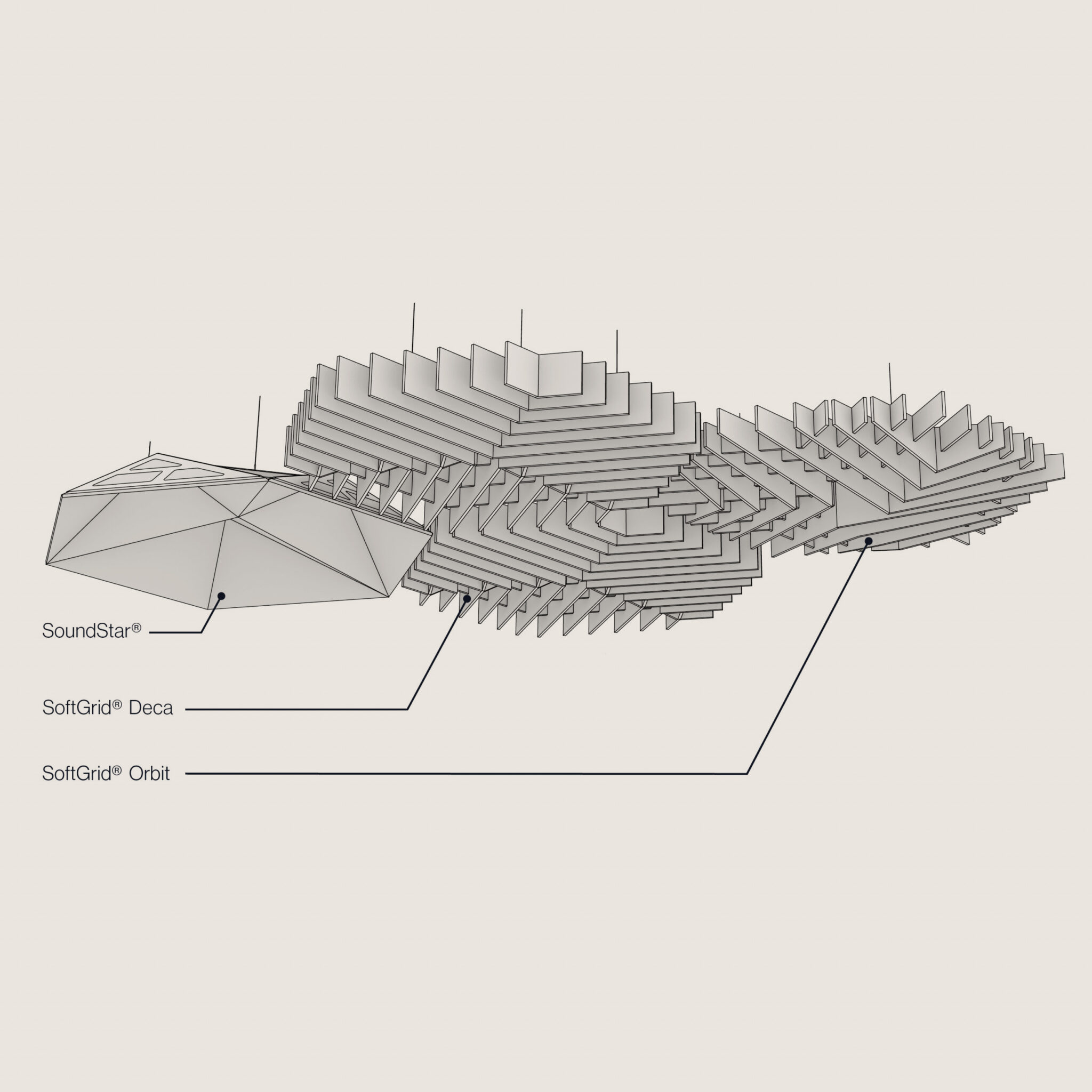 Crafted from high-performance Asoft™ material, DECA not only enhances your ceiling's beauty but also ensures exceptional sound absorption. Transform your environment into a serene oasis while enjoying the elegance of modern design with SoftGrid® DECA.