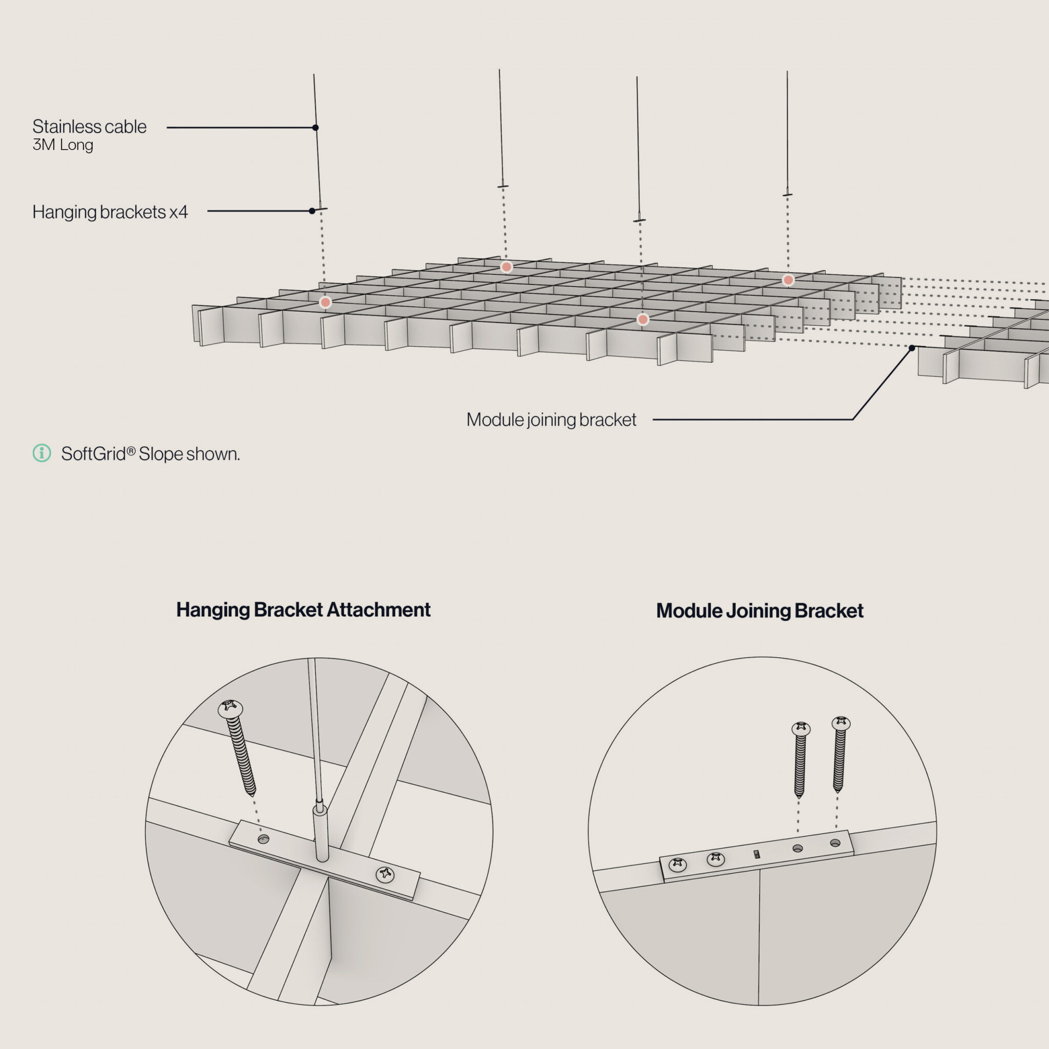Crafted from our eco-friendly Asoft™ material, SoftGrid® SLOPE not only meets your acoustic needs but also promotes environmental sustainability. With the introduction of SoftGrid® Max options for larger projects, it's never been easier to achieve the ultimate in design sophistication while maximizing value and minimizing ecological impacts. Transform your ceiling into a masterpiece of sound and style with SoftGrid® SLOPE!