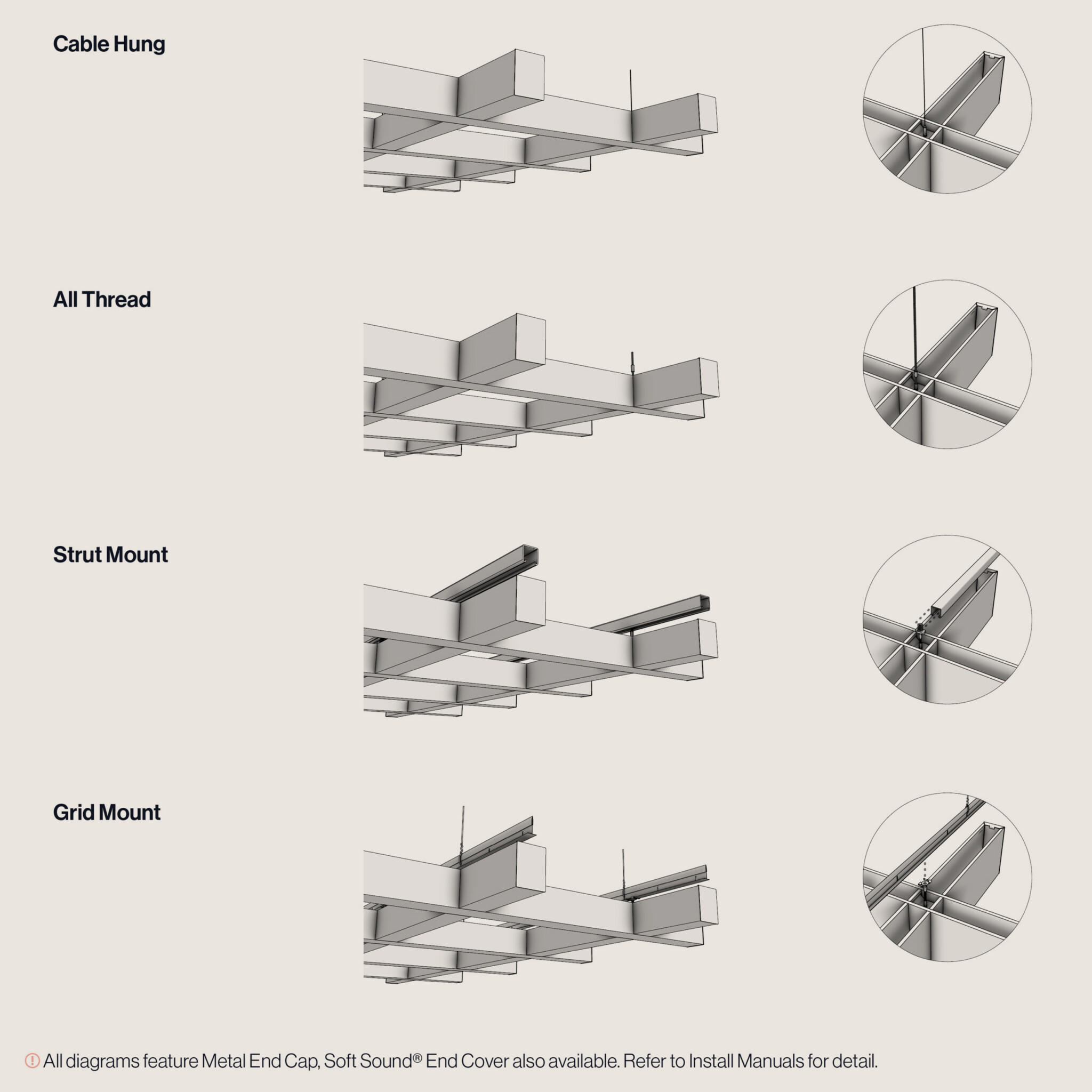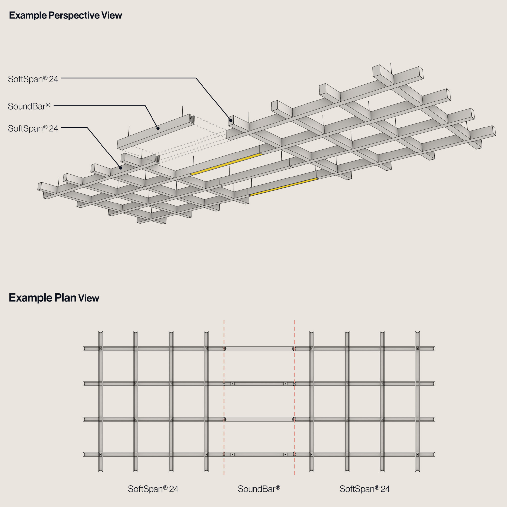 For an even more refined look, consider adding Asoft™ coffer panels to create a seamless, enclosed aesthetic while amplifying acoustic performance. Fully compatible with our SoundBar® acoustic baffle and lighting system, SoftSpan® 24 is the ideal choice for those seeking to elevate their interior design while achieving optimal sound quality.