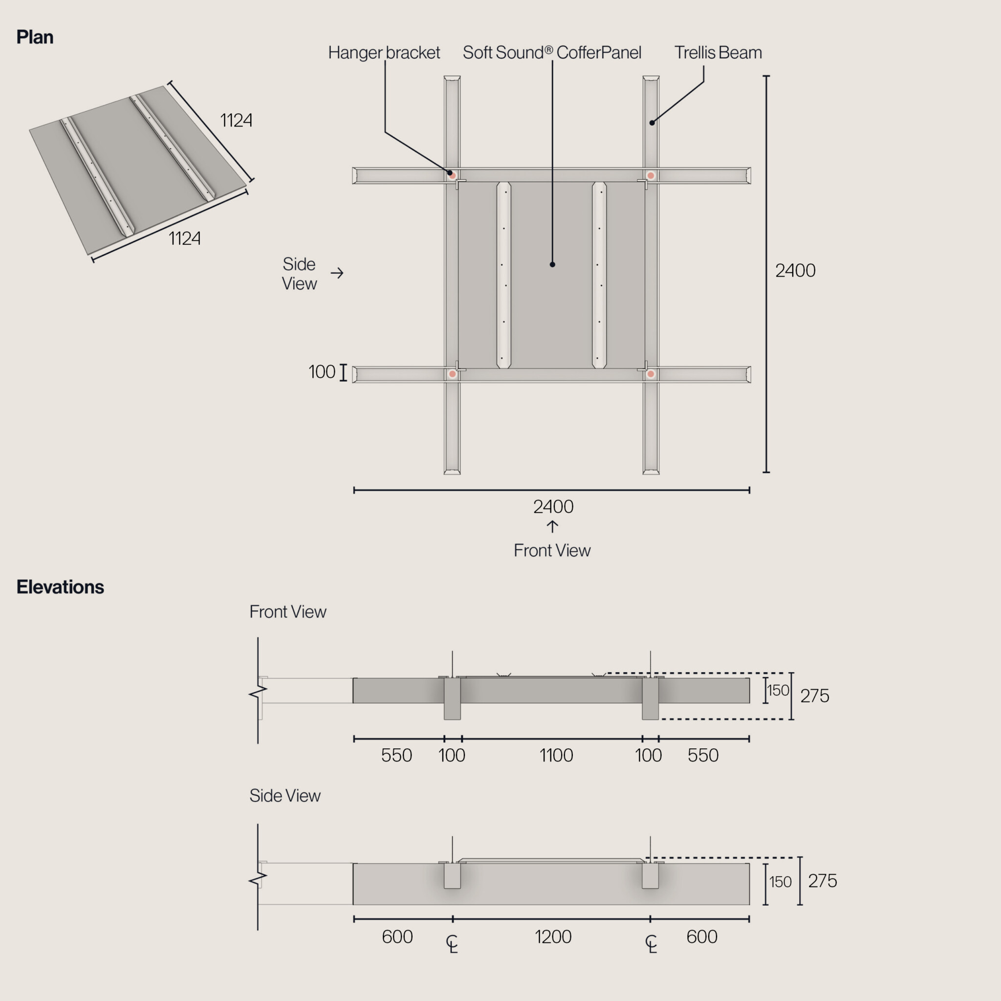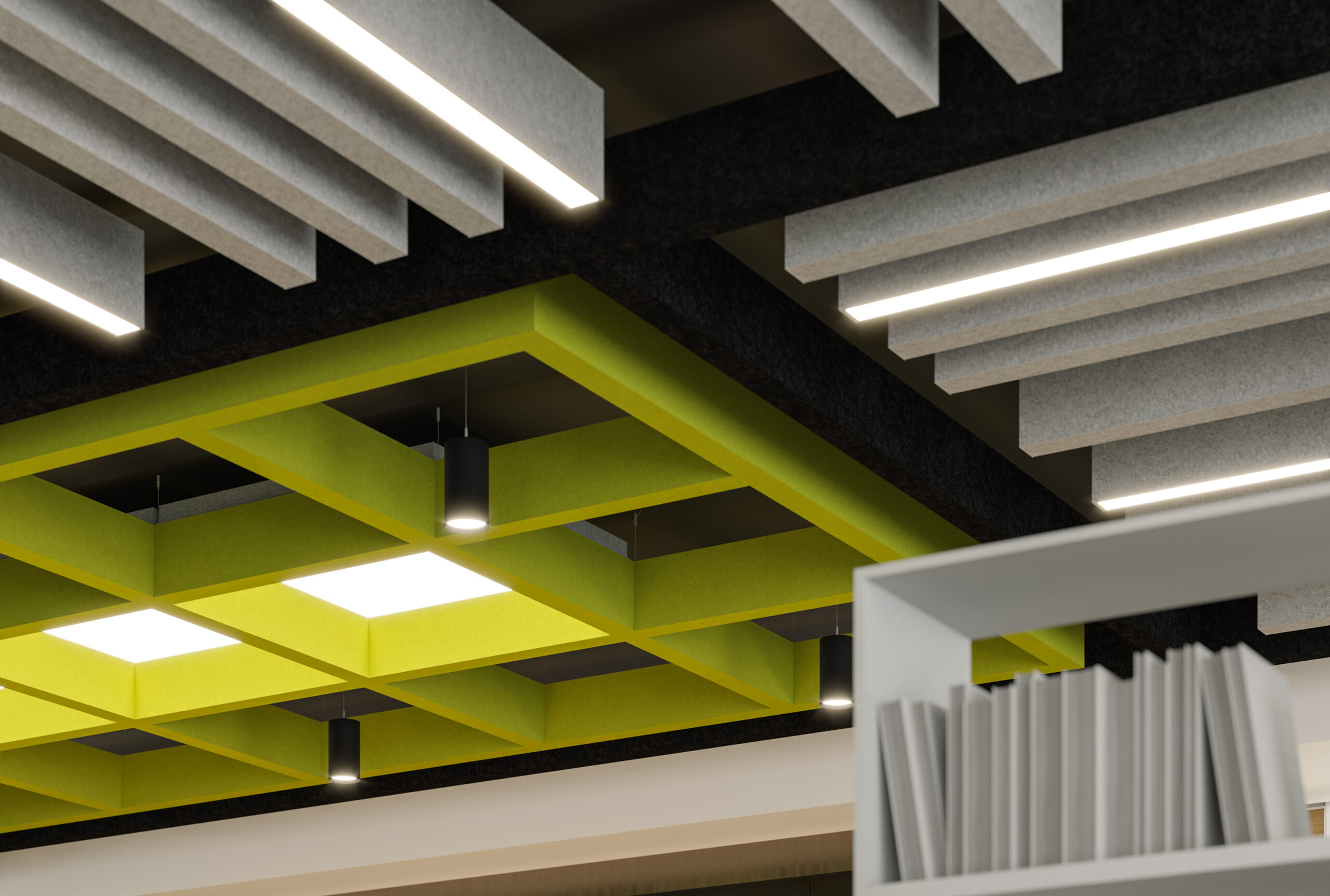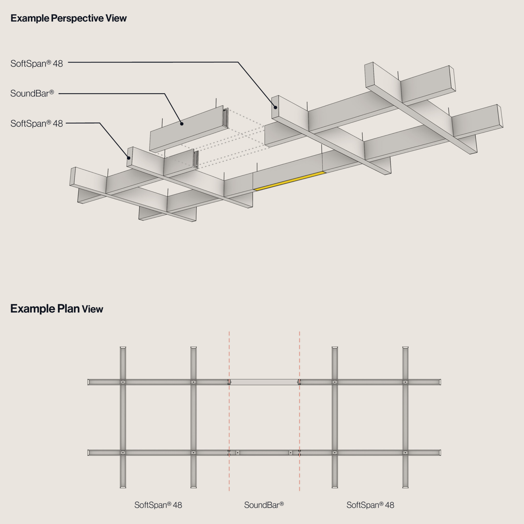 Take your design to the next level with the option to integrate Asoft™ coffer panels, which not only enriches the aesthetic appeal but also amplifies acoustic performance. Seamlessly compatible with the SoundBar® acoustic baffle and lighting system, SoftSpan® 48 isn't just a visual statement; it's a thoughtful blend of form and function, designed to transform everyday spaces into harmonious havens.
