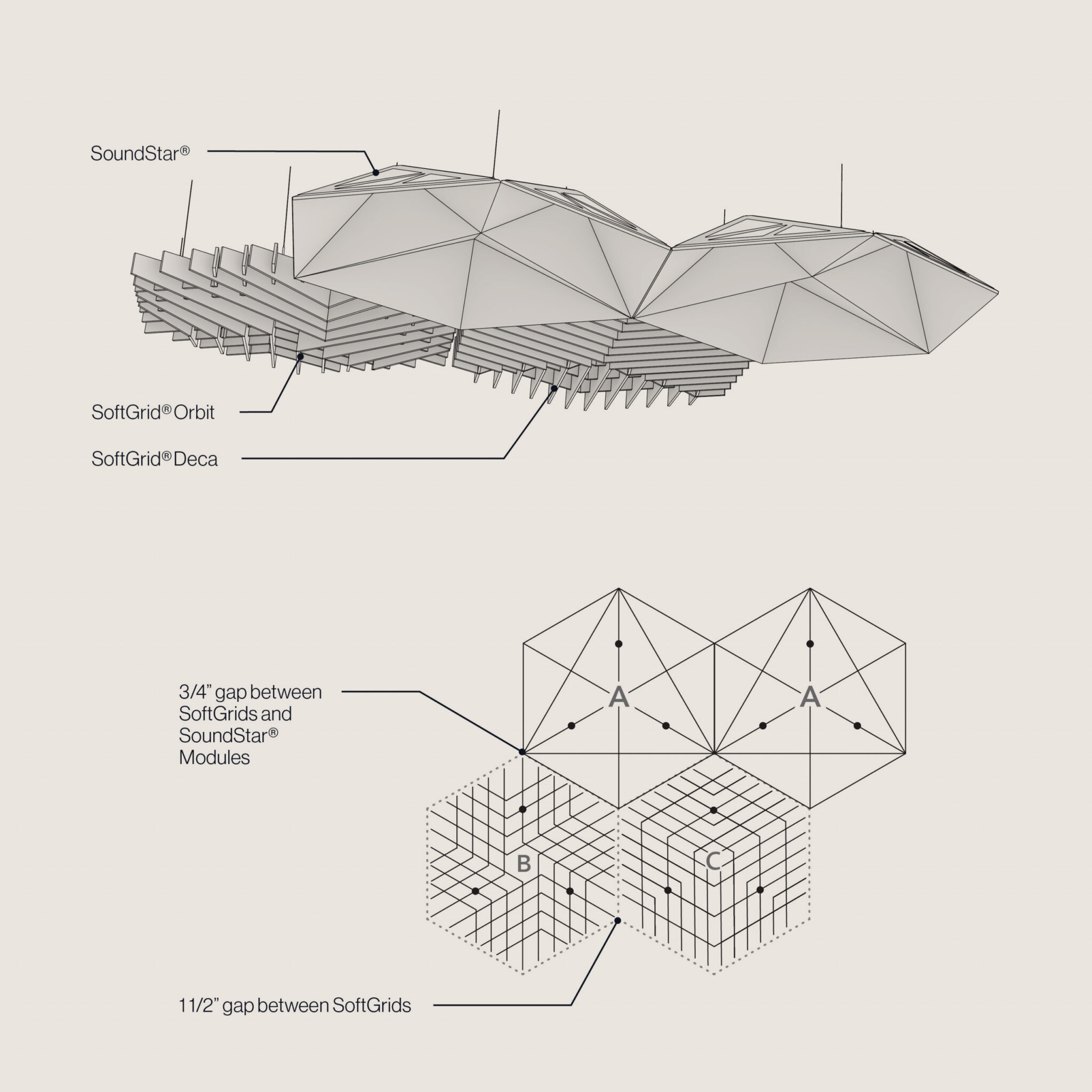 Whether you opt for the 12” or 24” deep modules, SoundStar® empowers you to mix and match to suit your design vision while optimizing sound attenuation. Experience the perfect blend of contemporary style and superior acoustics, creating a captivating visual impact in any room.