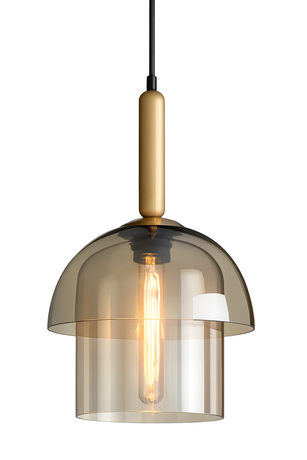 Designed with a layered transparent glass structure and brass-plated metal supports, this pendant light allows light to be perceived in its purest form. The glass surfaces reflect illumination naturally, creating a warm and sophisticated ambiance.