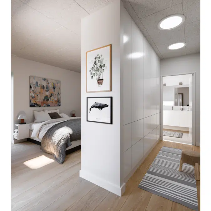 Engineered by VELUX, a renowned name in daylighting solutions, the TCF/TCR system combines advanced design with durable materials to maximize light transmission and minimize heat loss. Its sleek, low-profile design integrates seamlessly with flat roofs, preserving the building’s exterior appearance. The system includes a dome to capture sunlight, highly reflective tubing to transfer the light, and an interior diffuser that evenly disperses natural light throughout the room.
