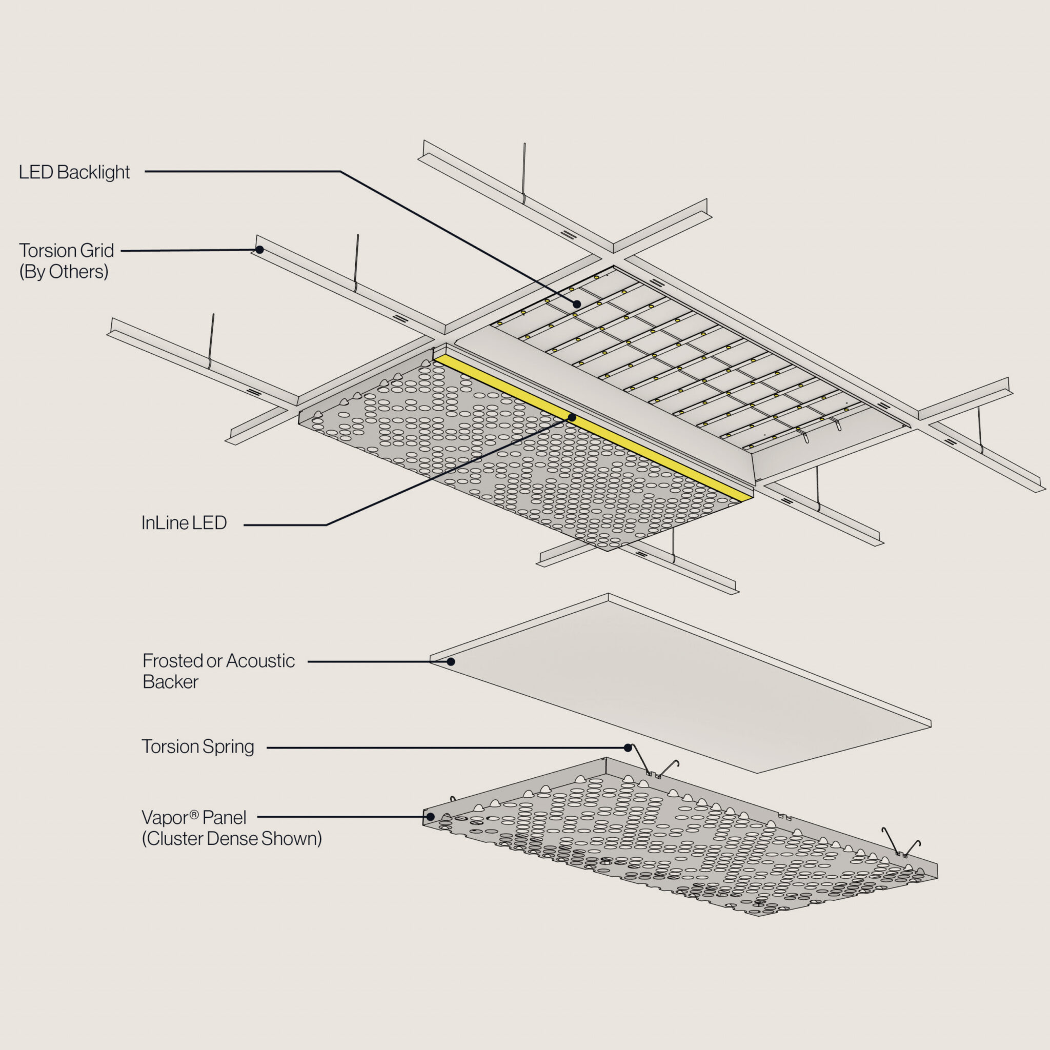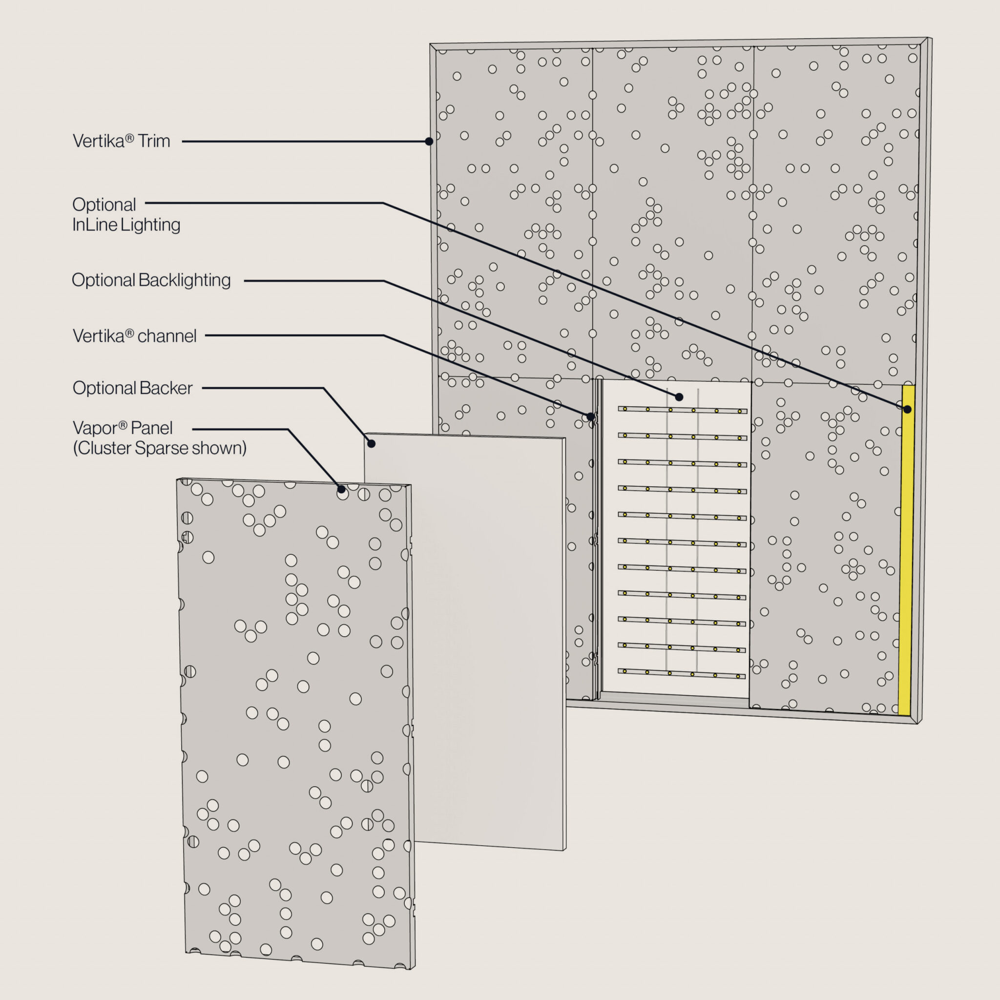 Featuring integrated InLine and Backlighting options, the Vapor® CLUSTER allows you to easily add illumination and dynamic lighting effects to your projects. This unique blend of functionality and style ensures that every room is not only visually stunning but also acoustically balanced, delivering a comprehensive solution that elevates the user experience to new heights. Illuminate your creativity with NOWN's Vapor® CLUSTER!