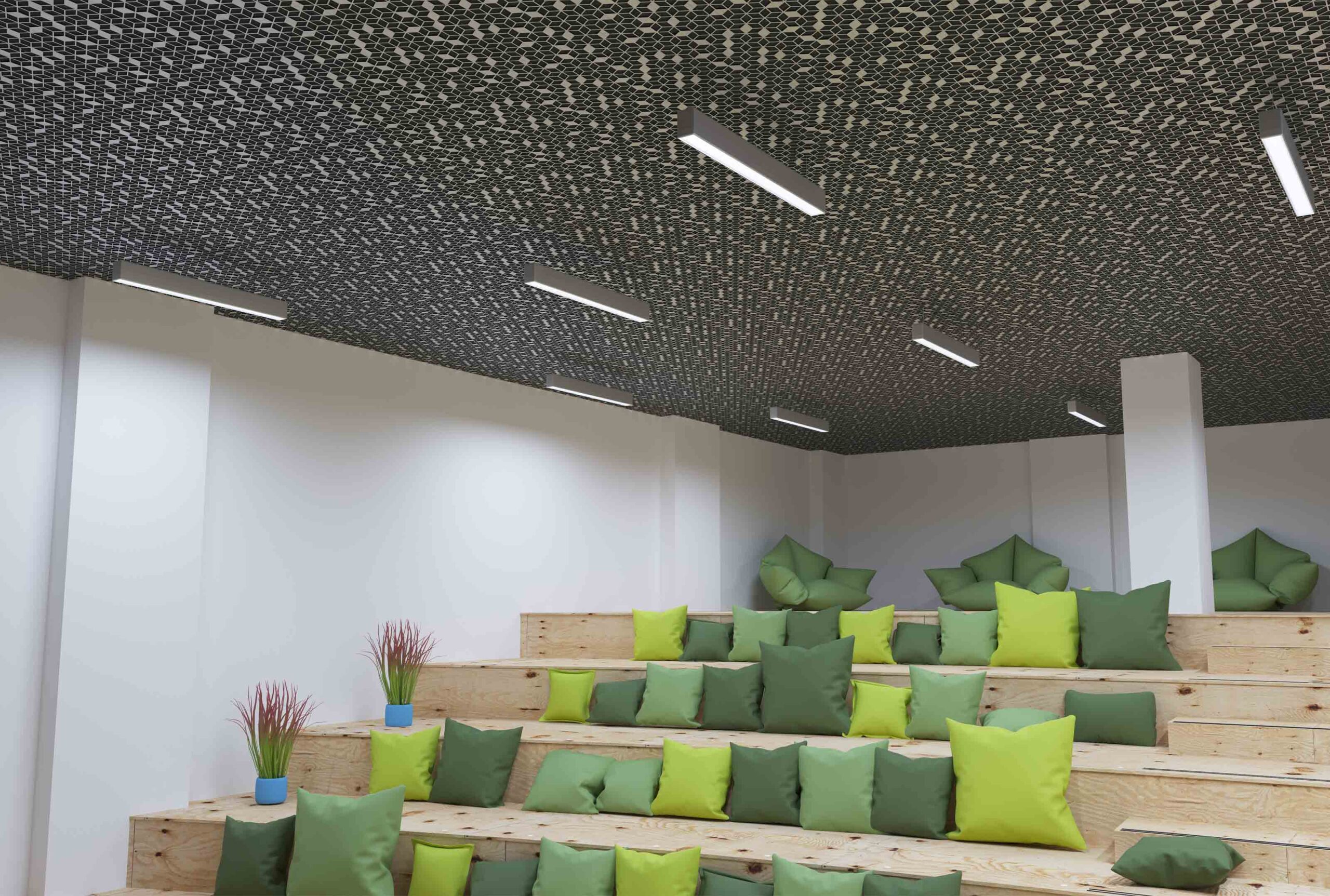But that's not all—enhance the ambiance further with our optional integrated lighting or enjoy unparalleled acoustic comfort with the Asoft™ backers. Whether you're designing a serene workspace or an inspiring public area, Vapor® CORA is the ideal choice to elevate both style and functionality in your interior design.