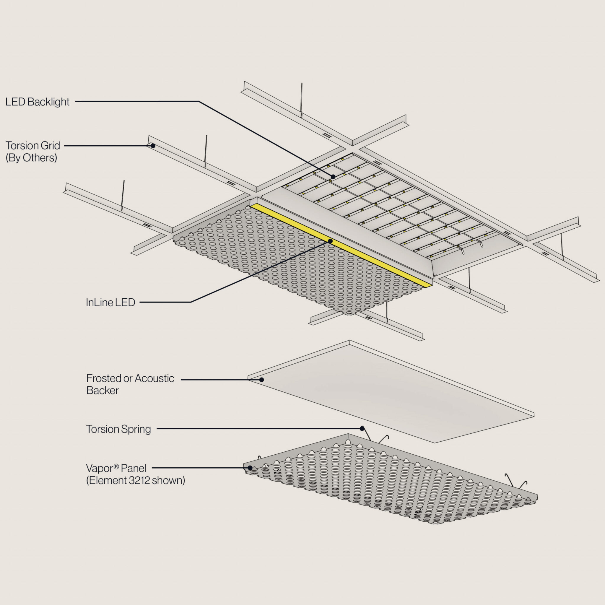 Transform your space effortlessly with NOWN's Vapor® ELEMENT, where innovative design meets functionality. This unique collection of acoustic ceiling and wall panels not only enhances sound quality but also elegantly integrates lighting solutions. Choose from integrated InLine and Backlighting options to create stunning visual effects tailored to your project's needs.