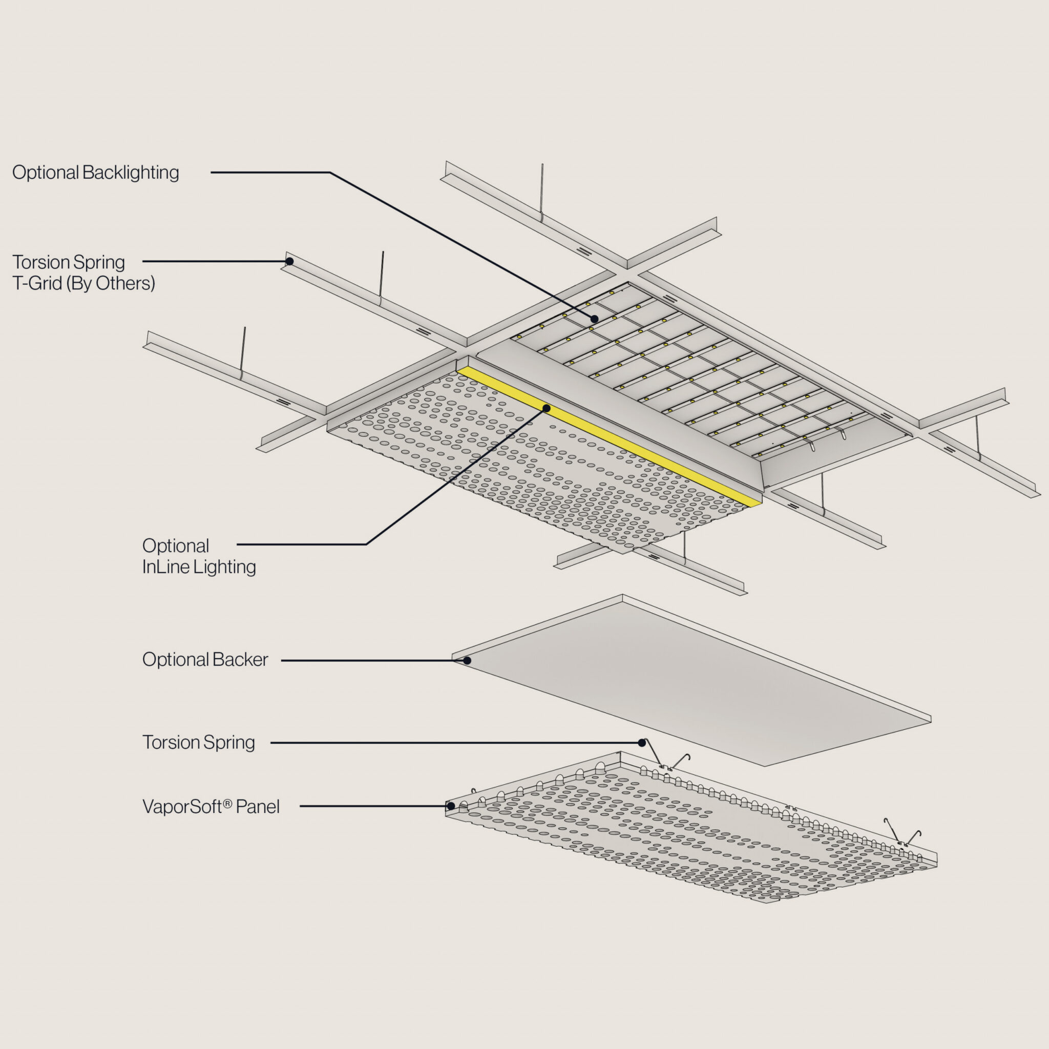 Elevate your space with the option of backlighting to truly blaze a trail. Ideal for both ceilings and walls, VaporSoft® TRAIL panels not only enhance the acoustic experience but also transform your environment into a stunning visual landscape. Perfect for contemporary spaces seeking to balance aesthetics and function, these panels are a definitive statement in modern design.