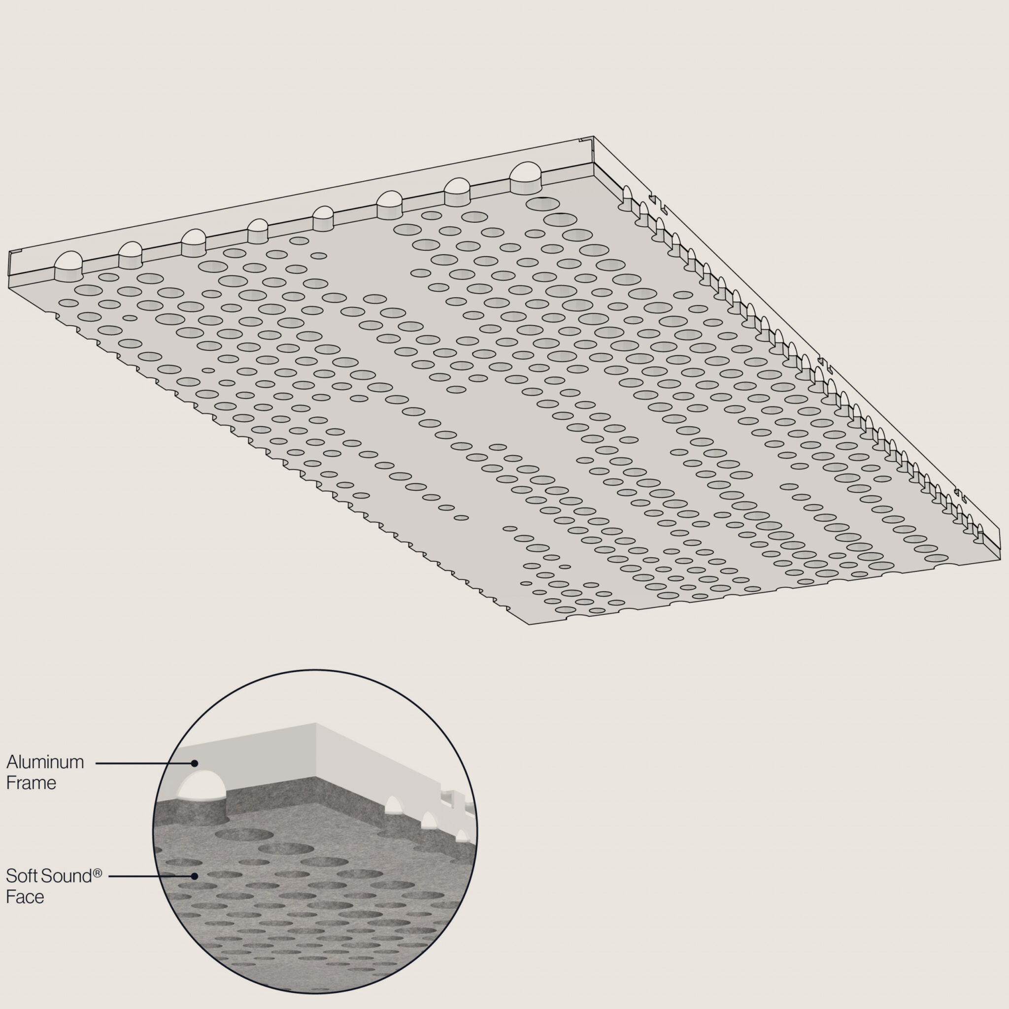 Introducing NOWN 'VaporSoft® TRAIL' — where art meets acoustics. These innovative torsion spring panels are designed with a captivating linear pattern of multi-sized circles, crafting a flowing visual that invites exploration and evokes emotion. The seamless transition from larger to smaller circles forms a mesmerizing trail that you’ll not only want to follow but can enjoy in complete silence, thanks to our premium Soft Sound material that ensures optimal sound absorption.