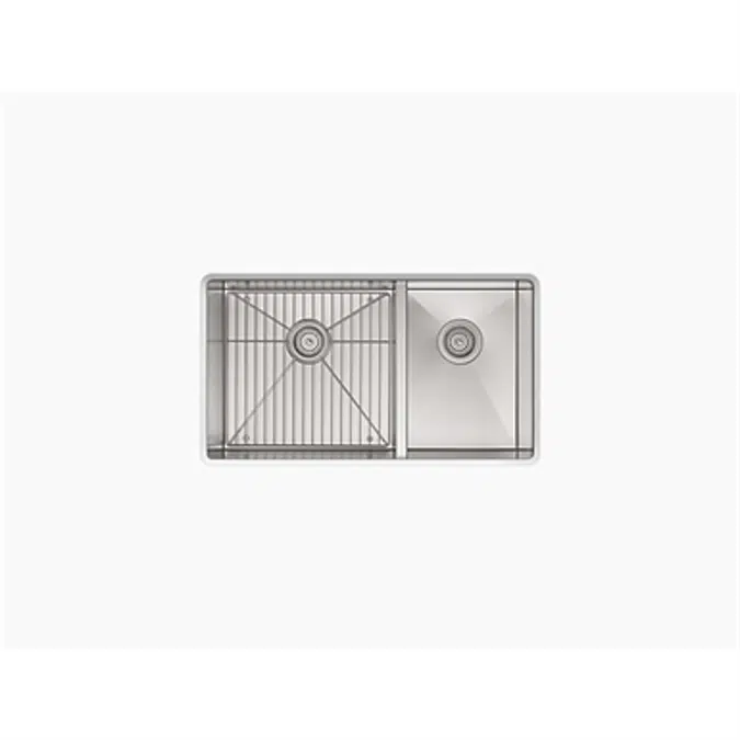 Kohler Vault Grand Asymmetric Sink (4-Holes) offers a modern and functional design perfect for enhancing any kitchen. Its asymmetric shape provides extra workspace, while the 4-hole configuration ensures versatile faucet and accessory installation.