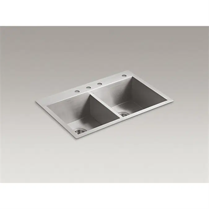 Vault Grand Double Sink (4-Holes) by Kohler offers a spacious and durable design perfect for modern kitchens. Crafted for superior functionality, this double sink features four holes to accommodate versatile faucet setups, enhancing both convenience and style.