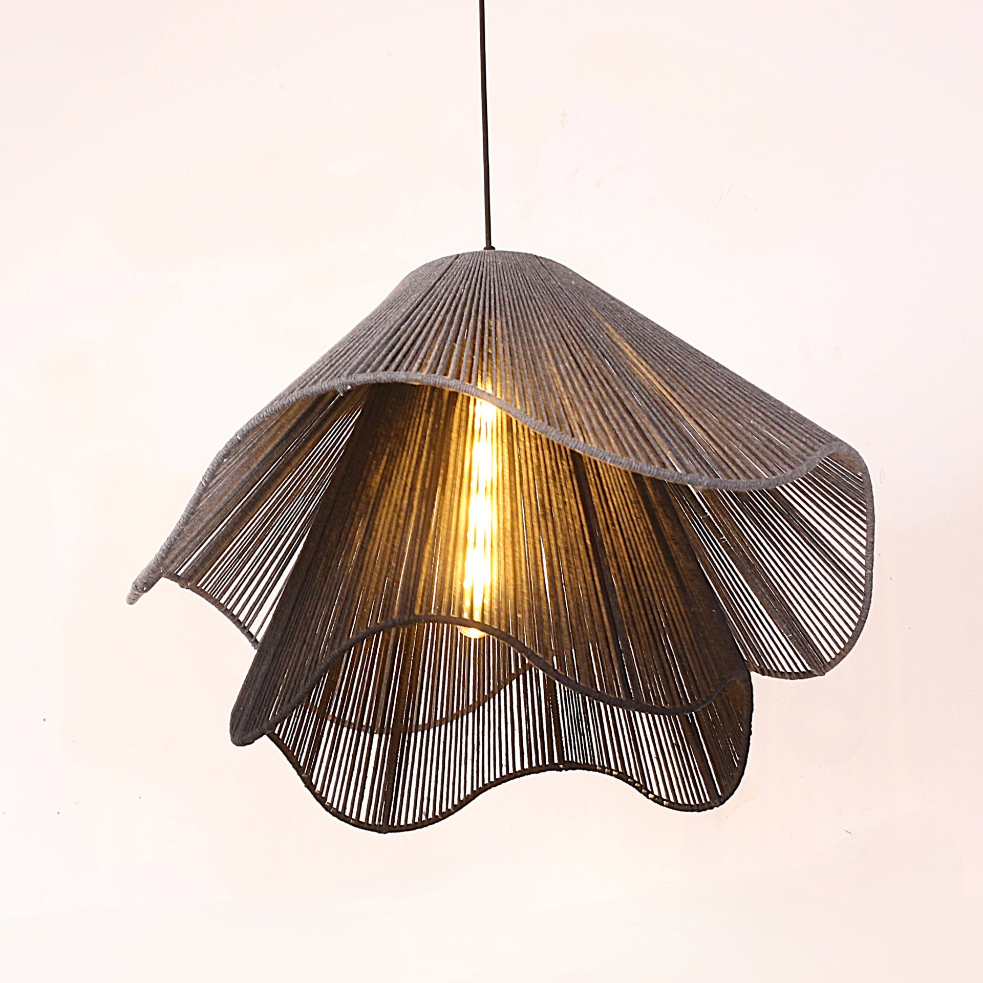 This special design, measuring 55 cm in diameter and 45 cm in height, stands out with its double-layered wavy form. The hand-knitted macrame ropes filter light, creating a soft glow throughout the space. This creates a warm and inviting atmosphere in your home or space.