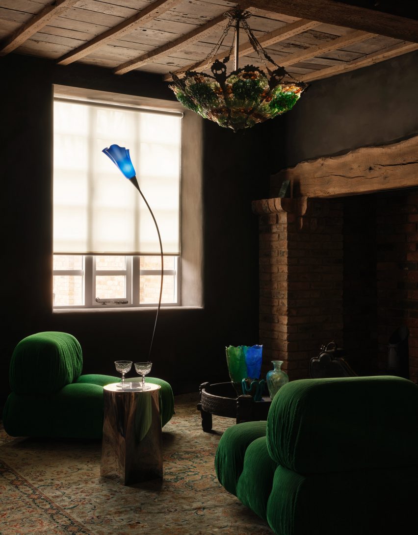 Sanatçı Jobe Burns, İngiltere'nin güneybatısındaki 300 yıllık bir çiftlik evinin yenileme çalışmalarını tamamlayarak , evin kırsal kimliğini ve eskimiş detaylarını kutlayan bir eve dönüştürdü.