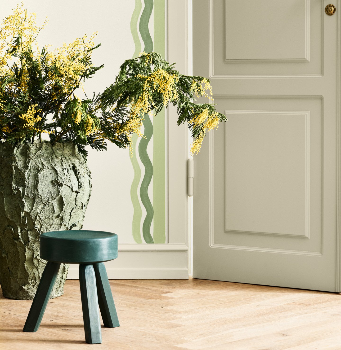 Avocado Green, taze, yeşil ve neşeli bir renktir. Ortama neşeli bir hava katar ve odayı soluk yeşillerden daha canlı hale getirir. Altın ve saf beyazlarla güvenli bir kombinasyon oluşturabilir veya erik, pembe ve mavi tonlarıyla oynayabilirsiniz.