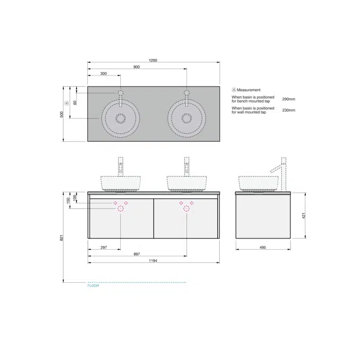 1200mm 2 Çekmece Kiraz Pasta Beyaz Asma Dolap 9509352 - Reece Etajerli Lavabolar