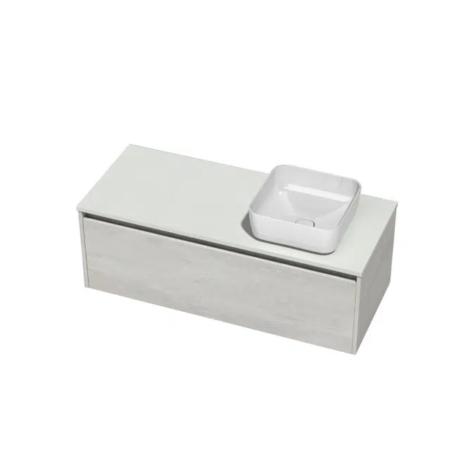 Reece 1200mm Sağ 1 Çekmece Kiraz Pasta Ahşap 370mm Kare Lavabolu Asma Dolap