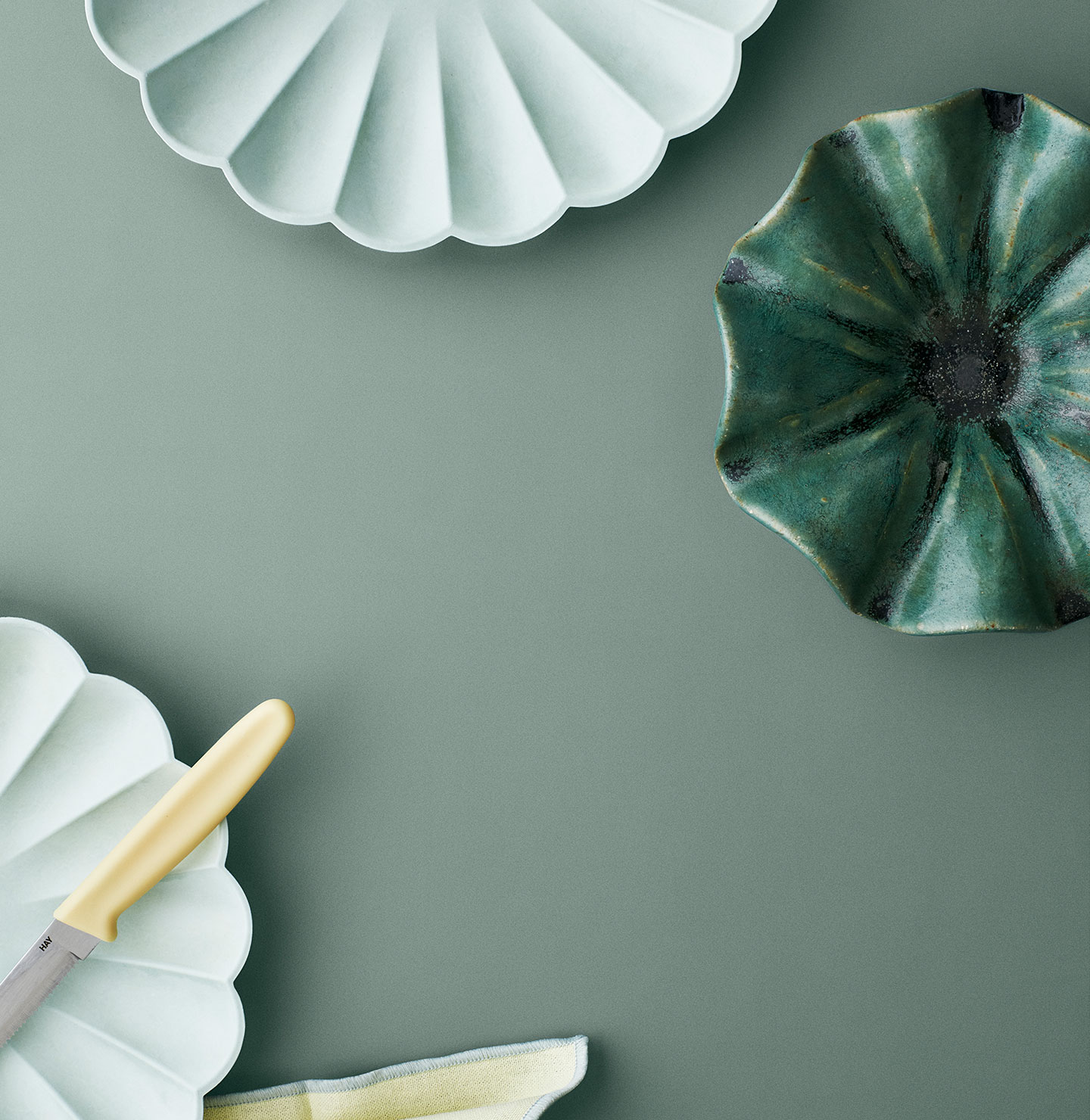 Bu gri-mavi-yeşil ton, serin ve rahat bir atmosfer sunar. Yatak odaları veya dinlenme odaları için mükemmel bir seçimdir. Nane tonları, yeşilimsi-mavi tonlar, yumuşak pembe tonları, diğer mavi-yeşil tonlar ve çeşitli soğuk nötr renklerle harika bir uyum sağlar.