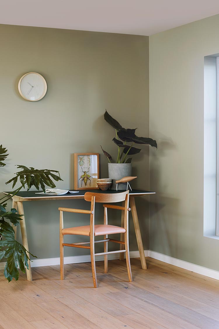 Sakin bir atmosfer yaratan sarımsı yeşil ton.