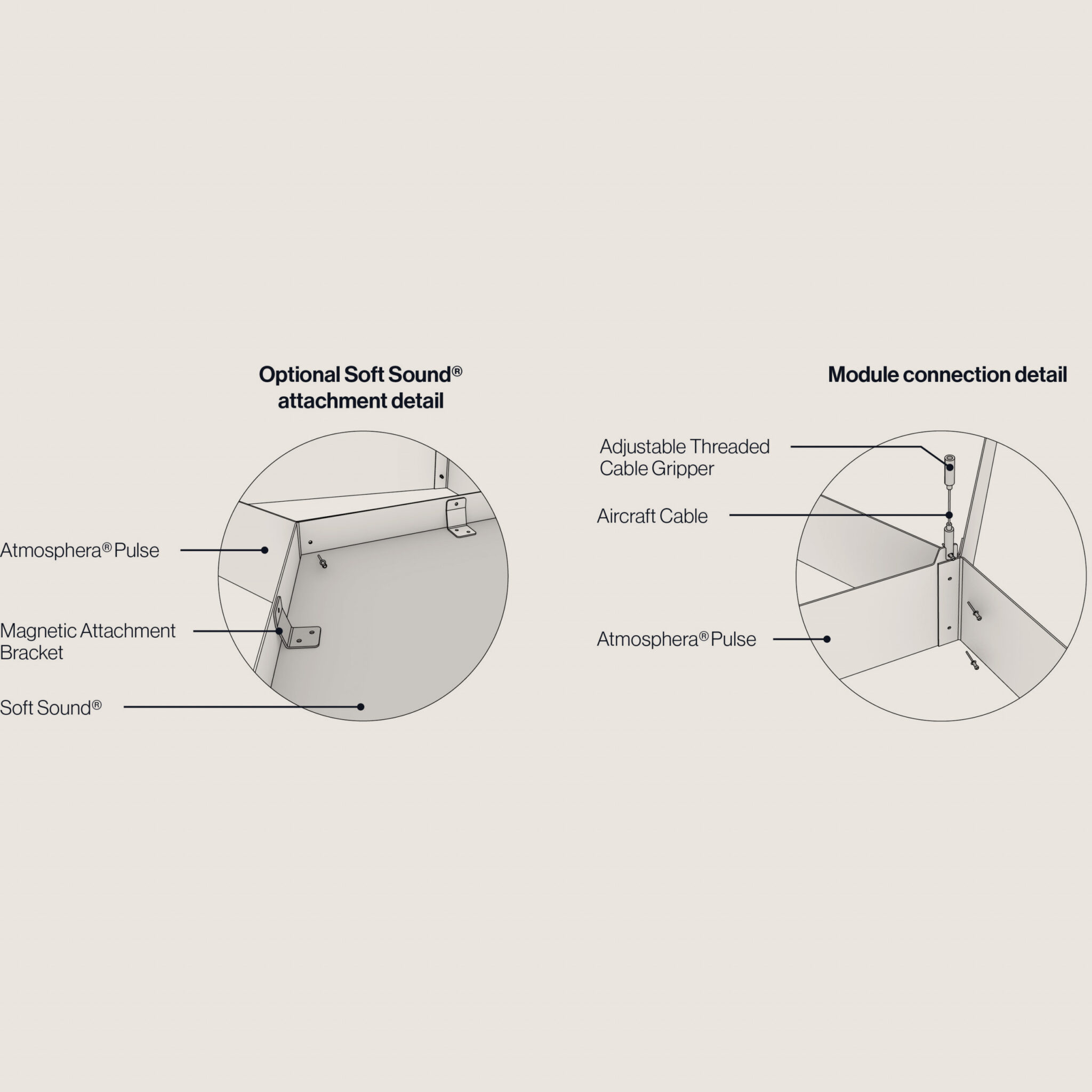 PULSE panelleri sadece çelikten üretilmektedir ve isteğe bağlı Asoft™ içermeleri sayesinde ses kontrolü sağlama imkanı sunar. Beş standart renkten birinde toz boyama seçeneği ile, mekanınıza özgün bir estetik kazandırabilirsiniz. Akustik performansı artırırken, şıklığı ve modernliği bir araya getiren Atmosphera® Adaptive PULSE ile tanışın!