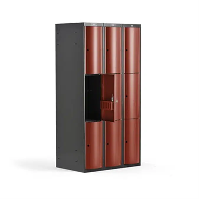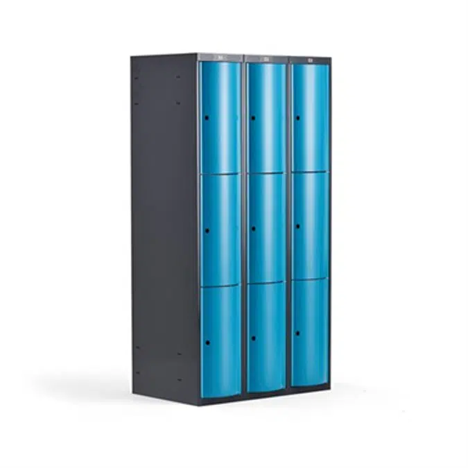 Curve 9 Kapaklı 3 Bölmeli Çoklu Emanet Dolabı, AJ Products markasının fitness salonları için tasarlanmış dayanıklı ve şık mobilyasıdır. Üç bölmeli yapısı ile kişisel eşyaların güvenle saklanmasını sağlar.