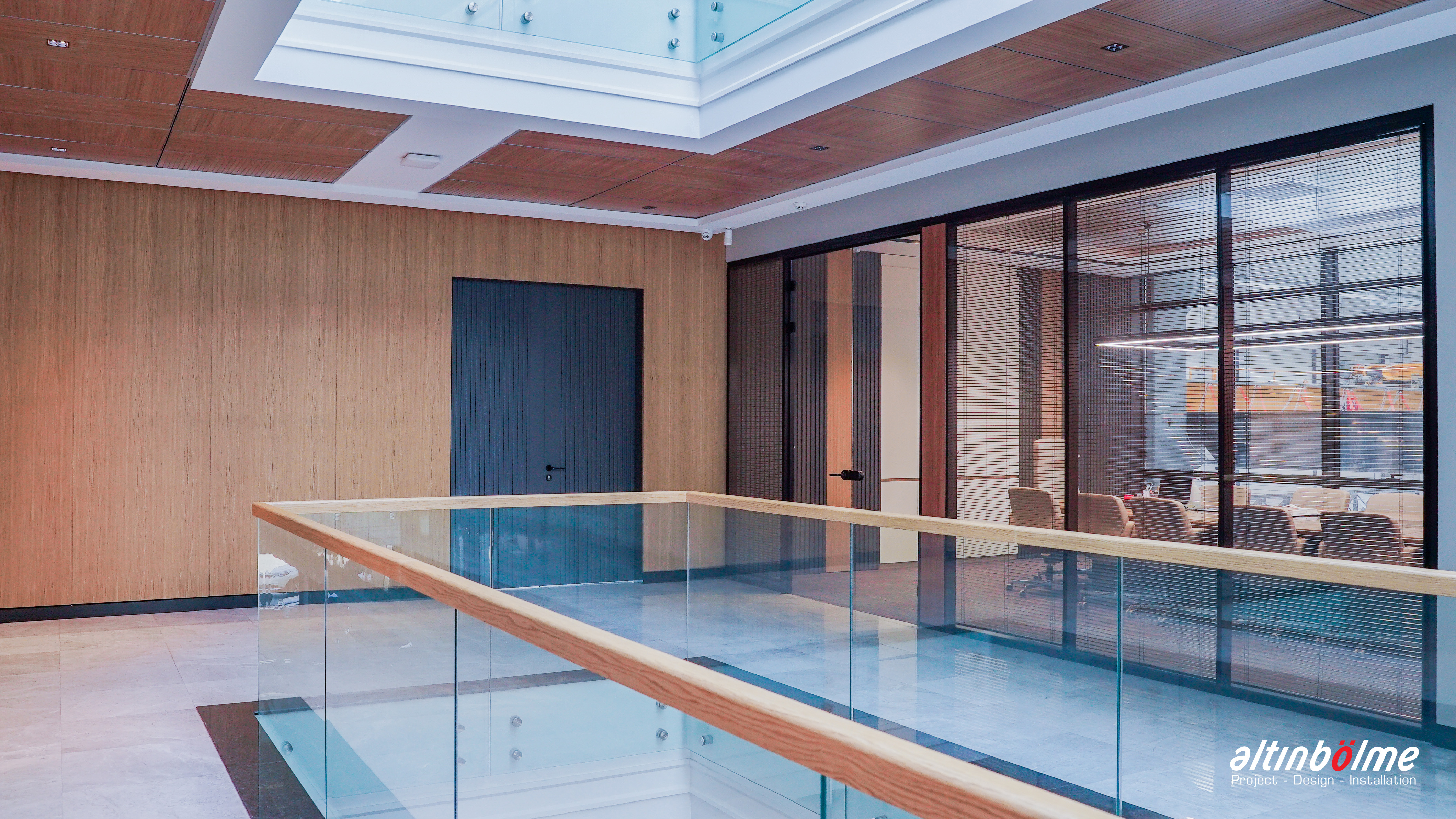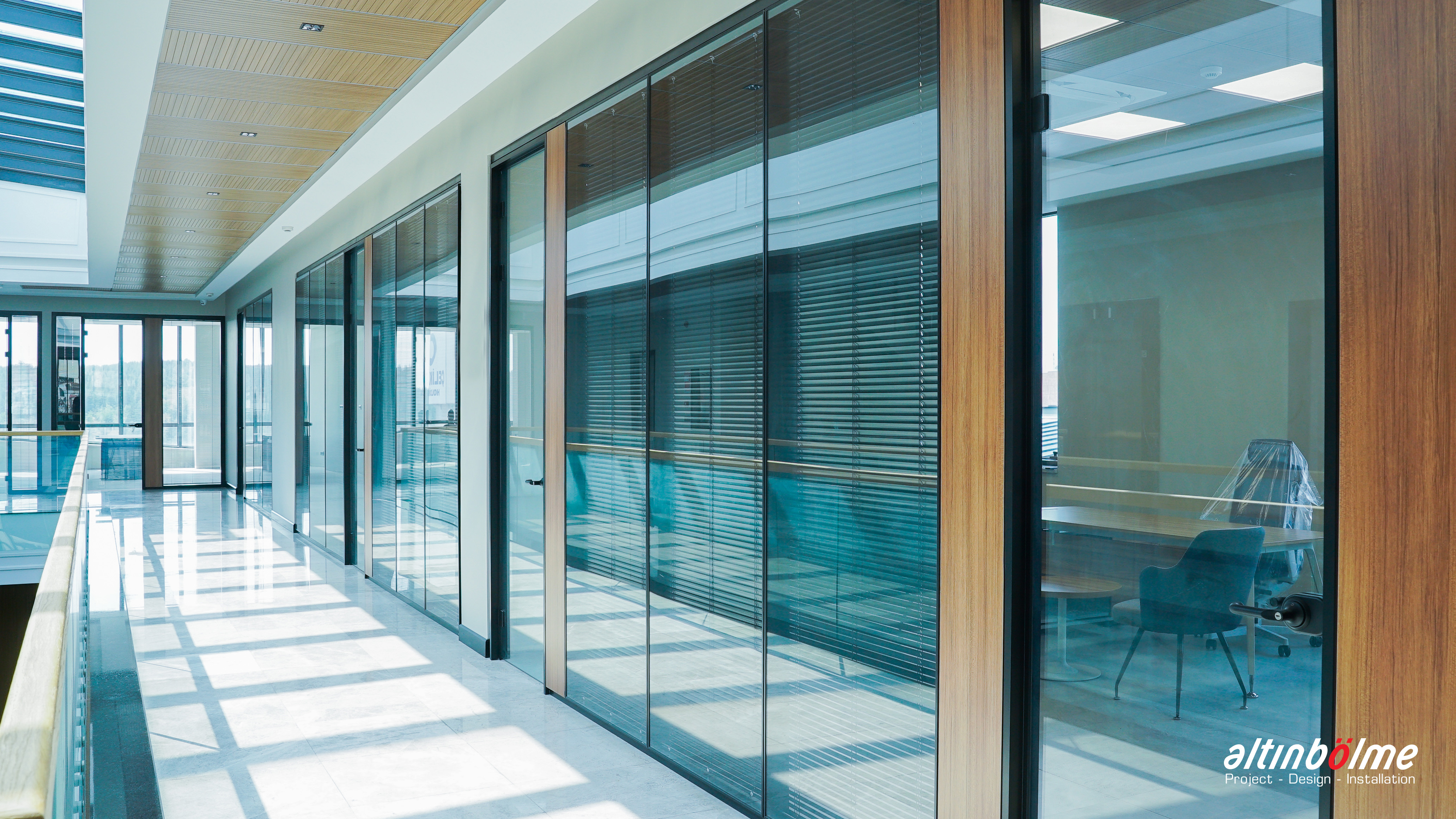 Cam cama profil birleşimlerinde ve cam kapı birleşimlerinde kullanılan klipsli çelik dikmeli sistem, rijit bir çerçeve oluşturarak yüksek ses yalıtımı sağlar. Üniteler arasındaki 6 mm derz detayı, tüm yapının kusursuz bir görünüme kavuşmasını destekler. Cam profillerin kenar boyunca klipslenmesi sayesinde yapısal bütünlük korunur ve estetik bir uyum yakalanır.