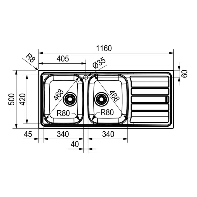 Flash Çift Kaseli Lavabo Sağ Drenaj-Sol Kase 2008346 - Reece Eviyeler