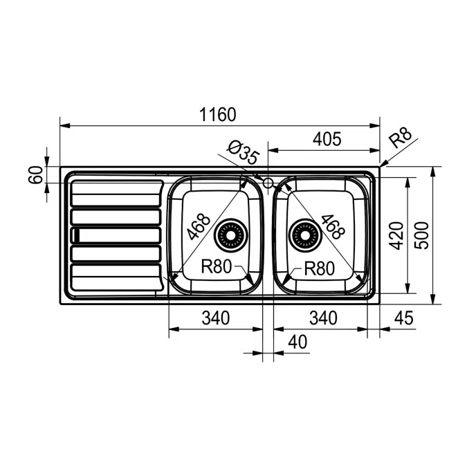 Bu lavabo, çift kase yapısı sayesinde yemek sonrası bulaşıkları kolayca ayırmanıza ve daha pratik bir kullanım sağlamanıza olanak tanır. Sol drenaj, yaratıcı mutfak düzenlemelerinde esneklik sağlar ve sağdaki kase genişliği ile maksimum kullanım alanı sunar. Paslanmaz çelik malzemesi sayesinde korozyona dayanıklıdır ve hijyen koşullarını en üst seviyede tutar.