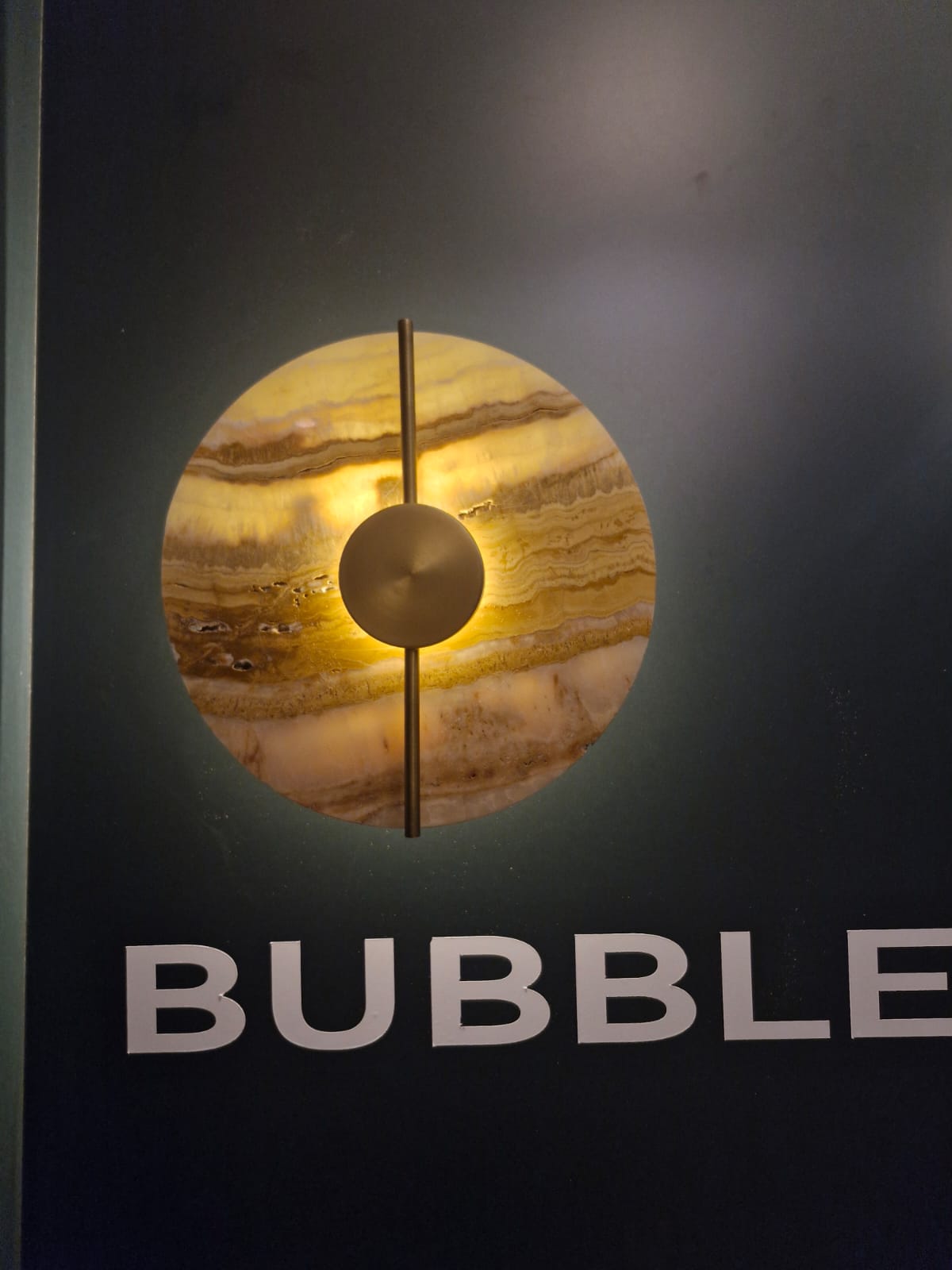 Doğal onyx mermerin kendine özgü damar yapısı ve pirinç kaplama metal detayların zamansız şıklığıyla tasarlanan bu duvar aydınlatması, hem dekoratif hem de fonksiyonel bir ışık çözümü sunar. Işık, onyx mermerin yarı geçirgen yapısından süzülerek sıcak ve yumuşak bir aydınlatma etkisi oluşturur.