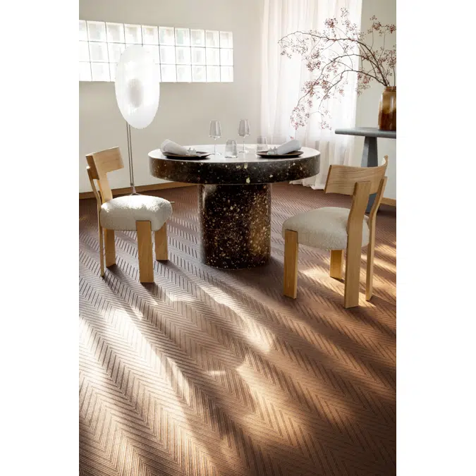 Bolon markasının özenle tasarladığı Graphic Herringbone Cinnamon zemin kaplaması, halı döşeme zeminler kategorisinde modern ve şık bir seçenek sunar. Estetik detayları ve fonksiyonel yapısı ile mekanlarınıza sofistike bir dokunuş katmaktadır.