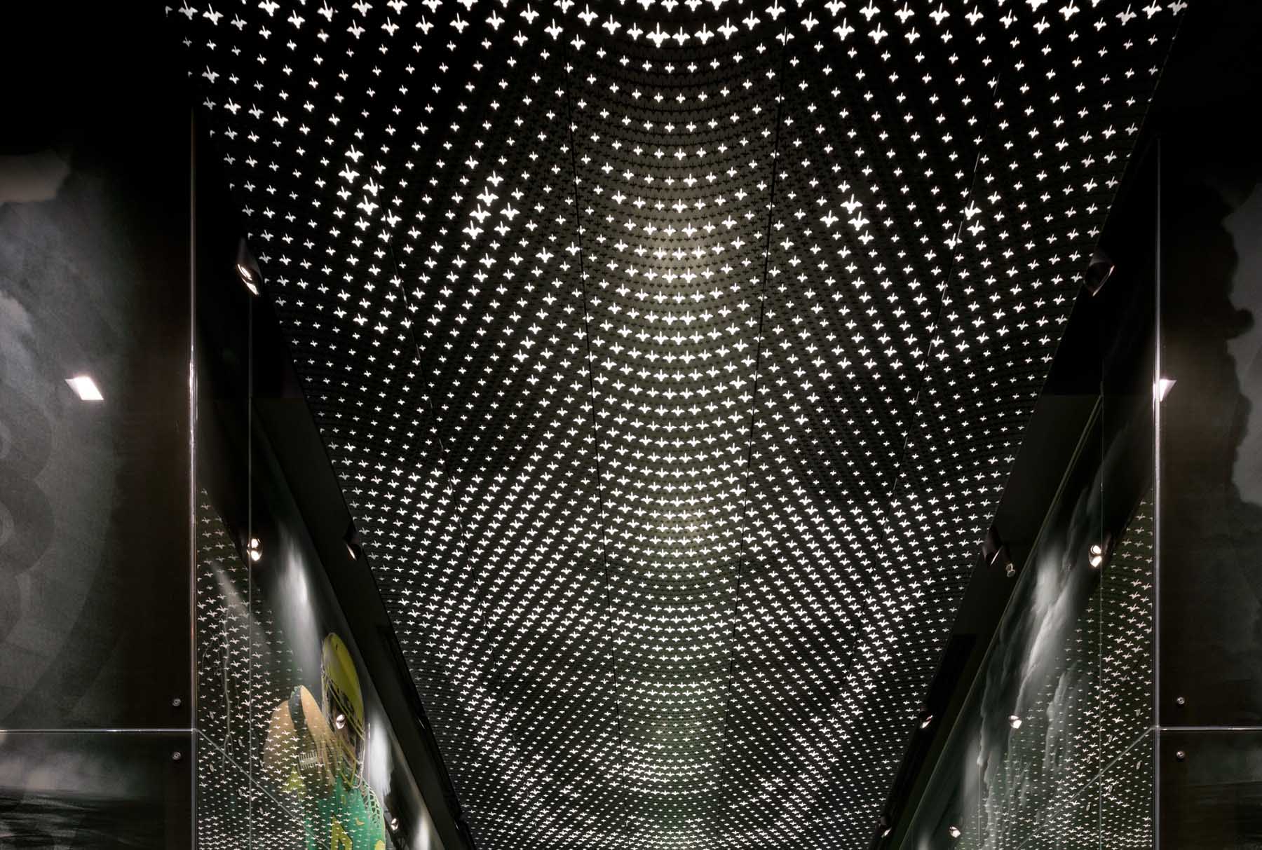 NOWN 'Graphic Perf® Solutions INTERIOR', tavan ve duvar panellerinde özel tasarımları metal perforasyon ile hayatınıza geçiriyor. Photoreal ve Scripted olmak üzere iki farklı yöntem sunarak, istediğiniz imaj veya deseni modüler parçalara ayırıyor. Bu sayede tasarımınız, hem estetik hem de işlevsel bir bütün oluşturacak şekilde birleşiyor ve esnek bağlantılarla kolayca monte ediliyor.