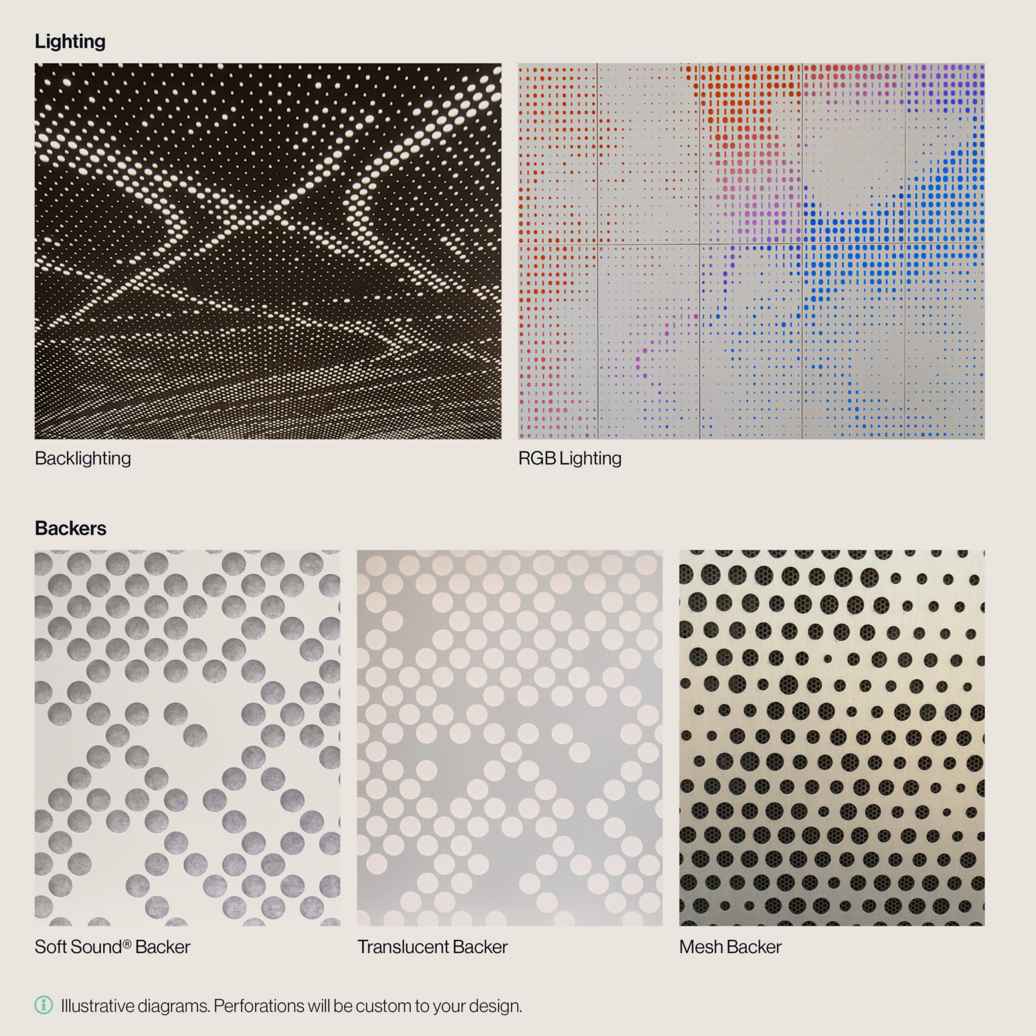 Hiç delikli metal panellerde bir görüntü veya benzersiz bir deseni hayata geçirmeyi ister misiniz? Graphic Perf® Solutions, metalinizi bir tuval haline getirmenin iki yolunu sunar - Fotoreal ve Scripted. Hangi yaklaşımı seçerseniz seçin, tasarımınız modüler segmentlere ayrılacak ve bu parçalar, alanınızın özel ihtiyaçlarına uygun esnek bağlantılarla bir araya getirilecek. NOWN'un uzman ekibi, sizi ve tasarımınızı kalabalıktan ayıracak eşsiz bir görünüm yaratmanıza yardımcı olmak için burada.