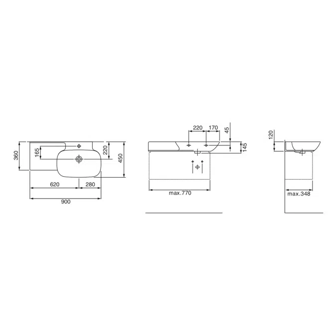 Bu dayanıklı duvar lavabosu, 1 delikli yapısı sayesinde kolay montaj imkanı sunarken, taşmalı özelliği ile suyun taşmasını önleyerek kullanımda ekstra güvence sağlar. 900mm genişliği ile geniş bir yüzey alanı sunar ve sıvı kullanımını daha rahat hale getirir. Beyaz raf detayı, lavabonun işlevselliğini artırırken dekoratif bir dokunuş yaratır.
