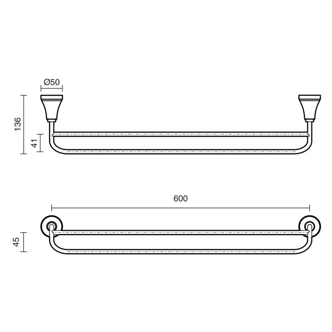 Bu çift havlu askısı, paslanmaya dayanıklı krom kaplaması sayesinde uzun ömürlü kullanım sunar. 600 mm genişliği, farklı boyutlardaki havluları aynı anda asabilmenize olanak tanır. Estetik görünümü ve sağlam yapısı ile banyoda düzeni sağlarken, minimalist tasarımı modern banyo dekorasyonlarına kolaylıkla uyum sağlar.