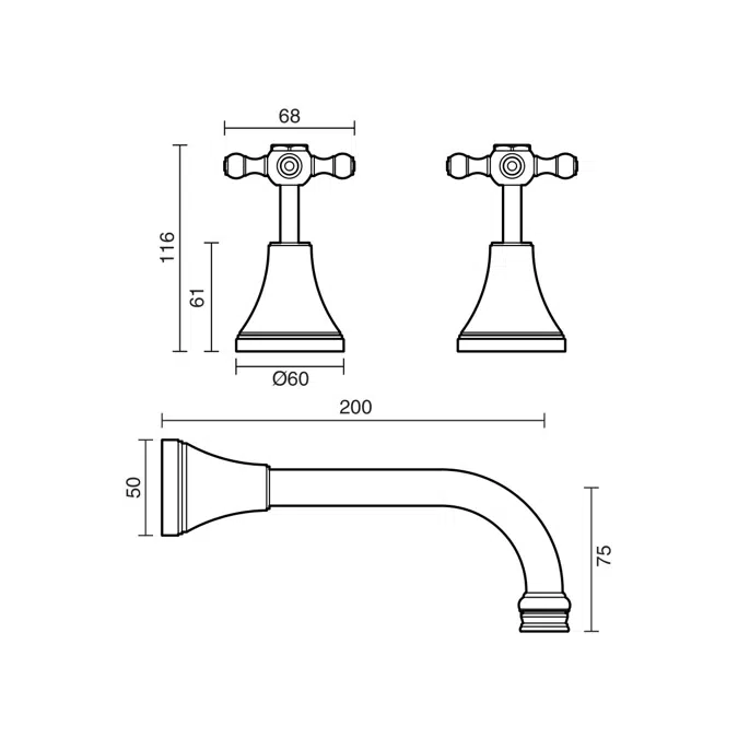 200mm çapraz kolları ile kullanım kolaylığı sağlayan bu lavabo bataryası, su akışını kontrol etmede pratiklik ve dayanıklılık sağlar.