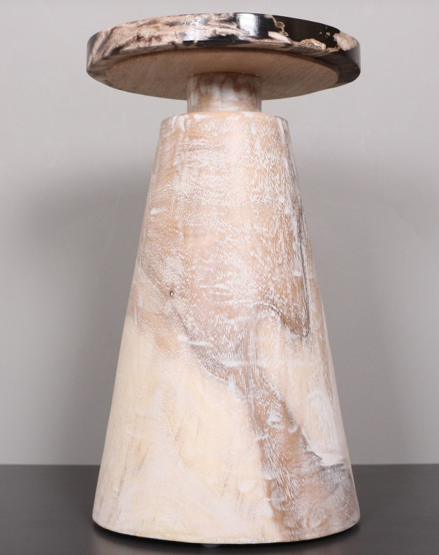 Ürünümüzün üst tablası, Fosilleşmiş ağaçtan, gövde kısmı ise mungur ağacından yapılmıştır. Milyonlarca yıl süren doğal süreçlerle "taşlaşmış ağaç" materyalinden üretilmiştir.