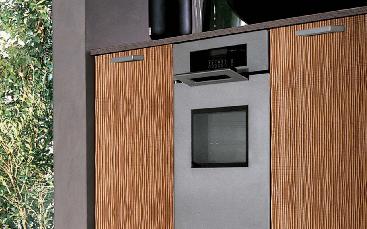 Işığın bu kavisli hatlar üzerindeki oyunu, yüzeyde yumuşak gölge geçişleri yaratarak durağan alanlara sanatsal bir derinlik kazandırır. Dokulu ahşap kaplama veya melamin seçenekleriyle sunulan bu seri, özellikle mutfak dolapları ve mobilya yüzeylerinde karakteristik bir dokunuş arayan projeler için sofistike bir kaplama çözümüdür.