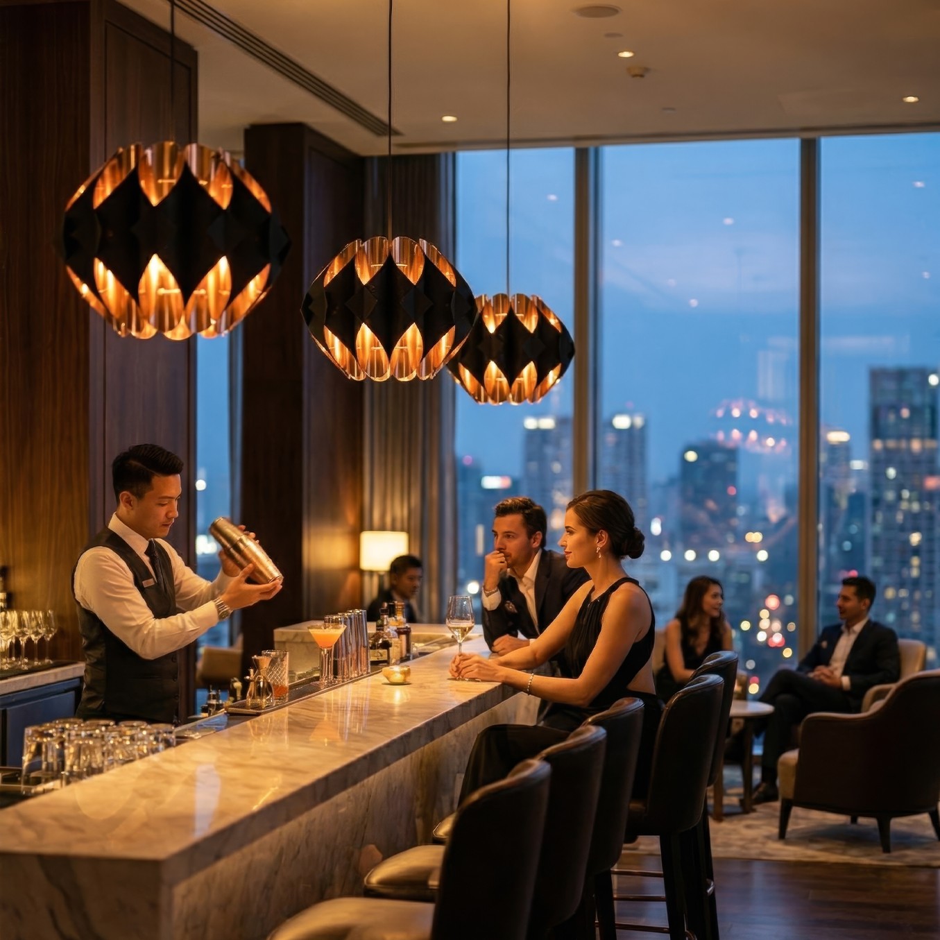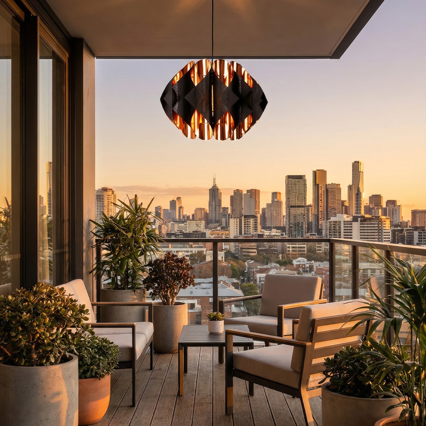 Lava Geometrik Sarkıt Avize Siyah-Bakır Renk