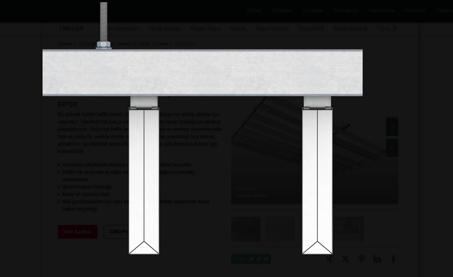 Bu yüksek kaliteli baffle tavan, özellikle bakım ihtiyacının arttığı alanlar için uygundur. Hareketli tek parça baffle'lar sayesinde tavan boşluğuna rahatça ulaşabilirsiniz.