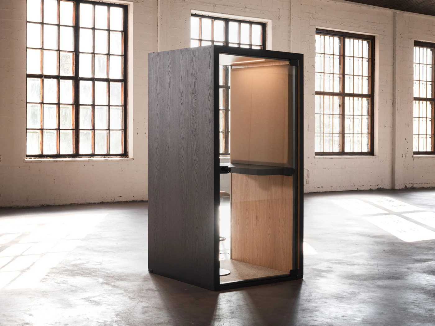 Özel çalışma veya telefon görüşmeleri için tasarlanmış, kompakt ve ses yalıtımlı bir kabin. Bu telefon kabini, dikkat dağıtıcı unsurlardan uzak, bireysel odaklanma için mükemmeldir.