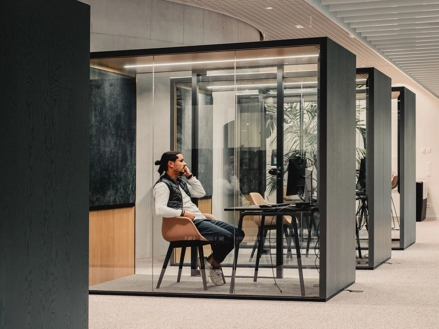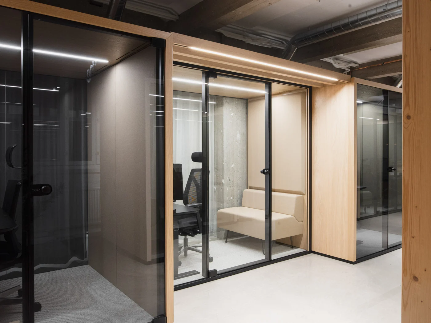 Tek kişilik özel ofis bölmesi veya iki kişilik küçük toplantı kabini, sakin ve dikkat dağıtıcı unsurlardan uzak bir ortam sunar.
