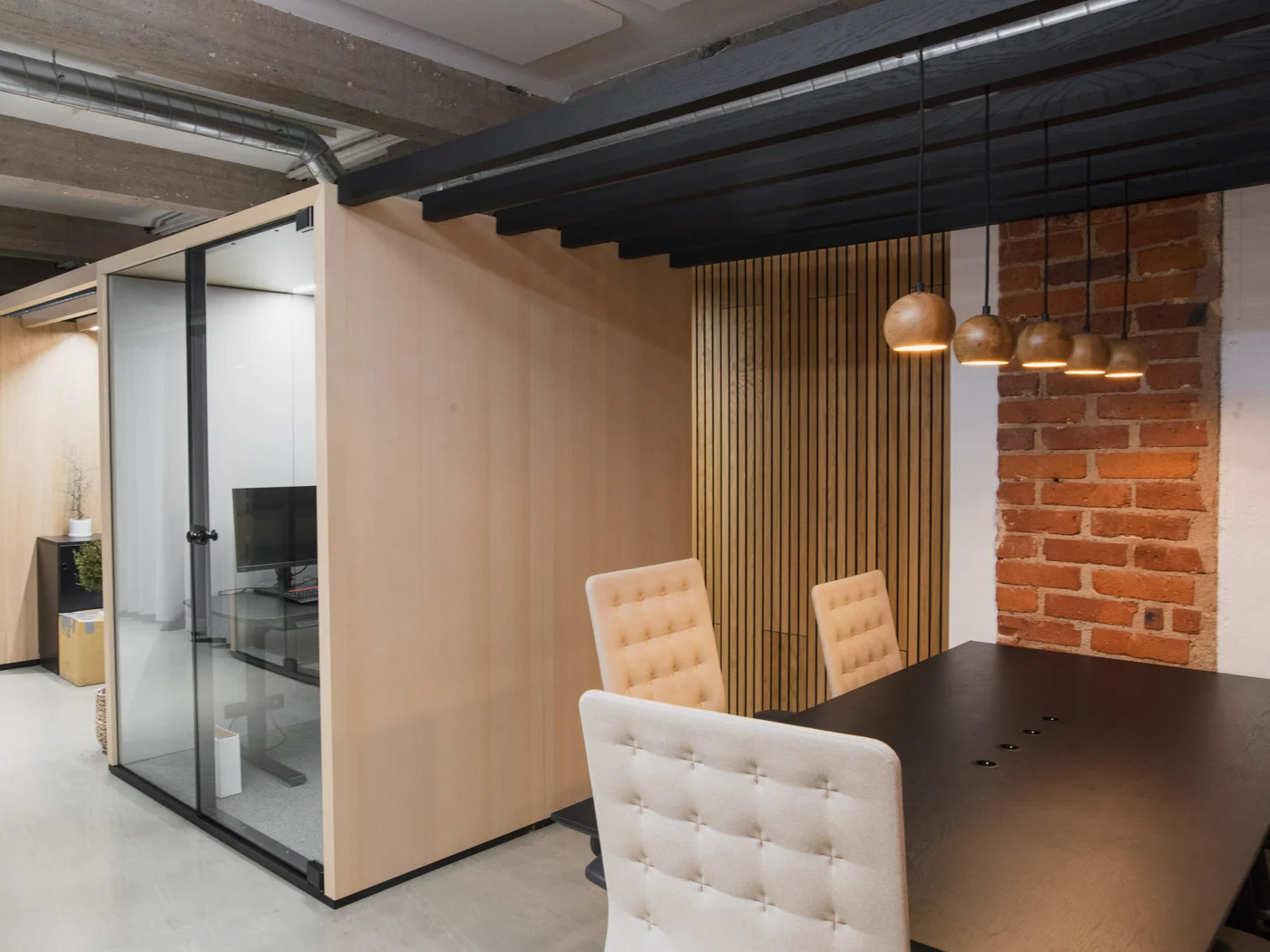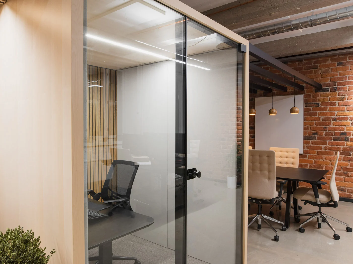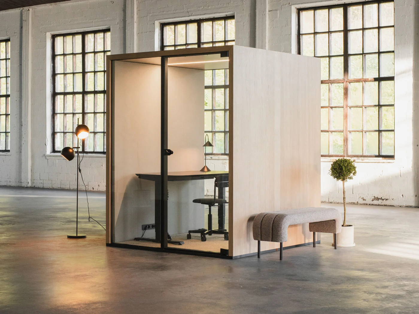 Bir veya iki kişi için kompakt ve sakin bir ortam. Odaklanmayı ve verimliliği artırmak için tasarlanmış, özel, ses yalıtımlı bir çalışma alanı.