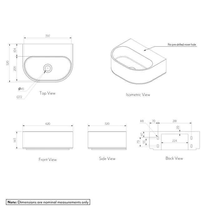 Duvara monte edilen bu lavabo, alan tasarrufu sağlarken pratik kullanım sunar, estetik ve fonksiyonelliği bir arada arayanlar için ideal bir seçenektir.