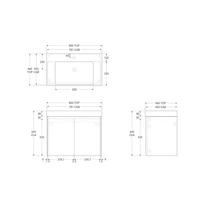 Ona Mat Beyaz Tüm Kapılı Orta Lavabolu Vitrin 800mm 21214 - Reece Etajerli Lavabolar