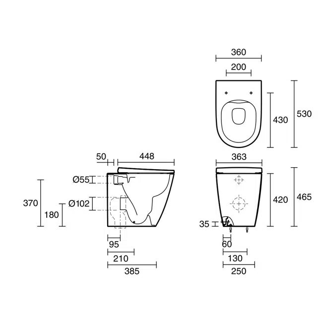 Bu klozet, duvara dayalı montaj sistemi sayesinde alan tasarrufu sağlar ve kolay temizlenebilir yapısı ile hijyen standartlarını yükseltir. Çerçevesiz tasarımı bakterilerin birikmesini önlerken, yavaş kapanan kapağı sayesinde sessiz ve konforlu bir kullanım sunar. Beyaz renk seçeneği ile her banyo dekoruna uyum sağlayan ürün, dayanıklı malzemelerden üretilmiştir ve uzun ömürlüdür.