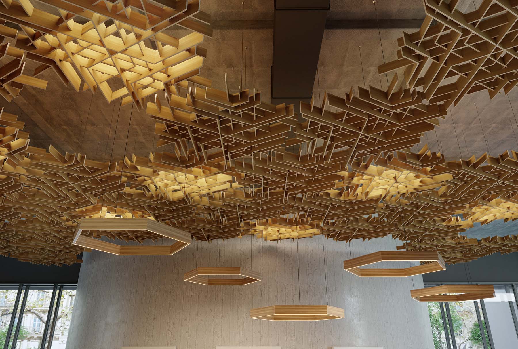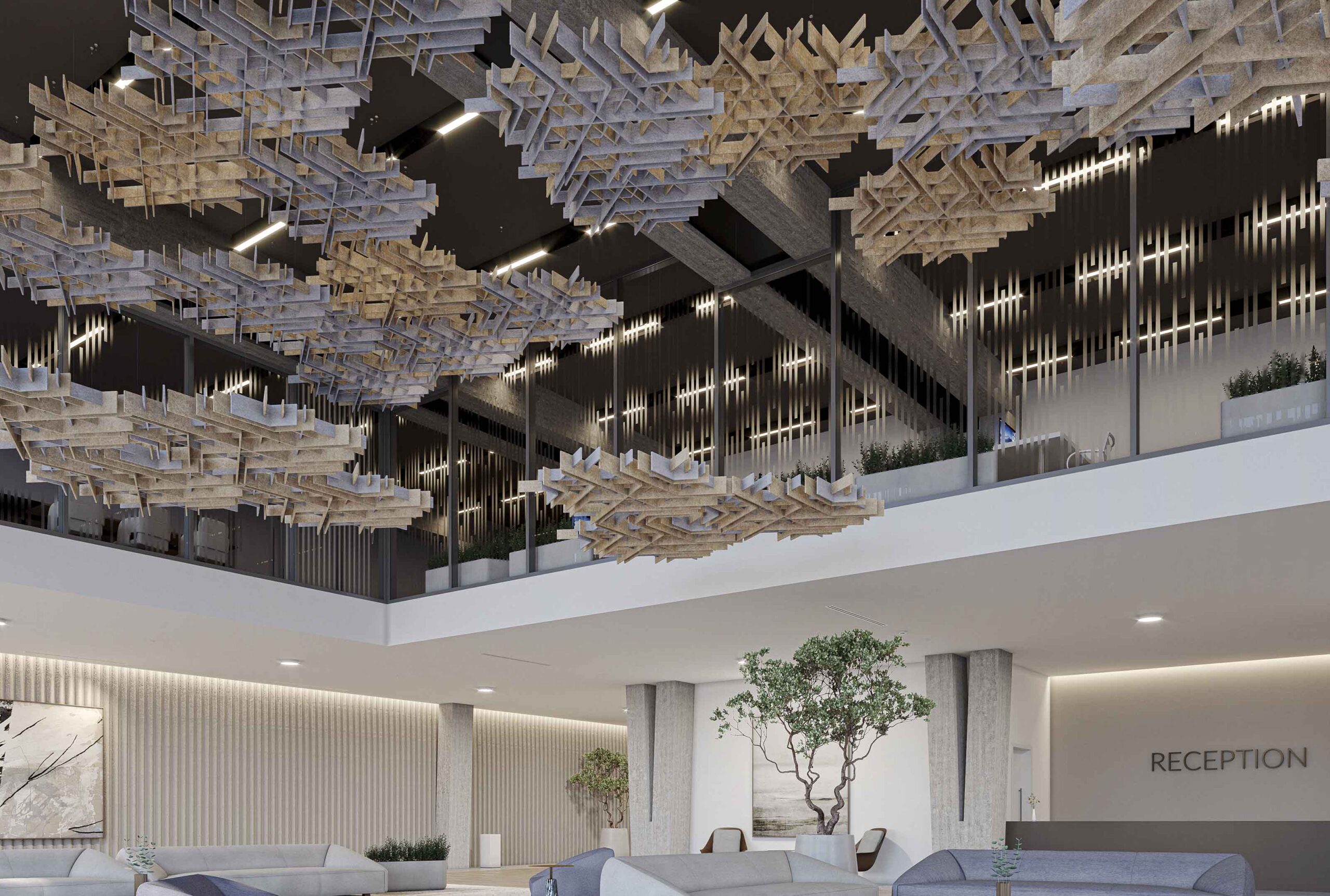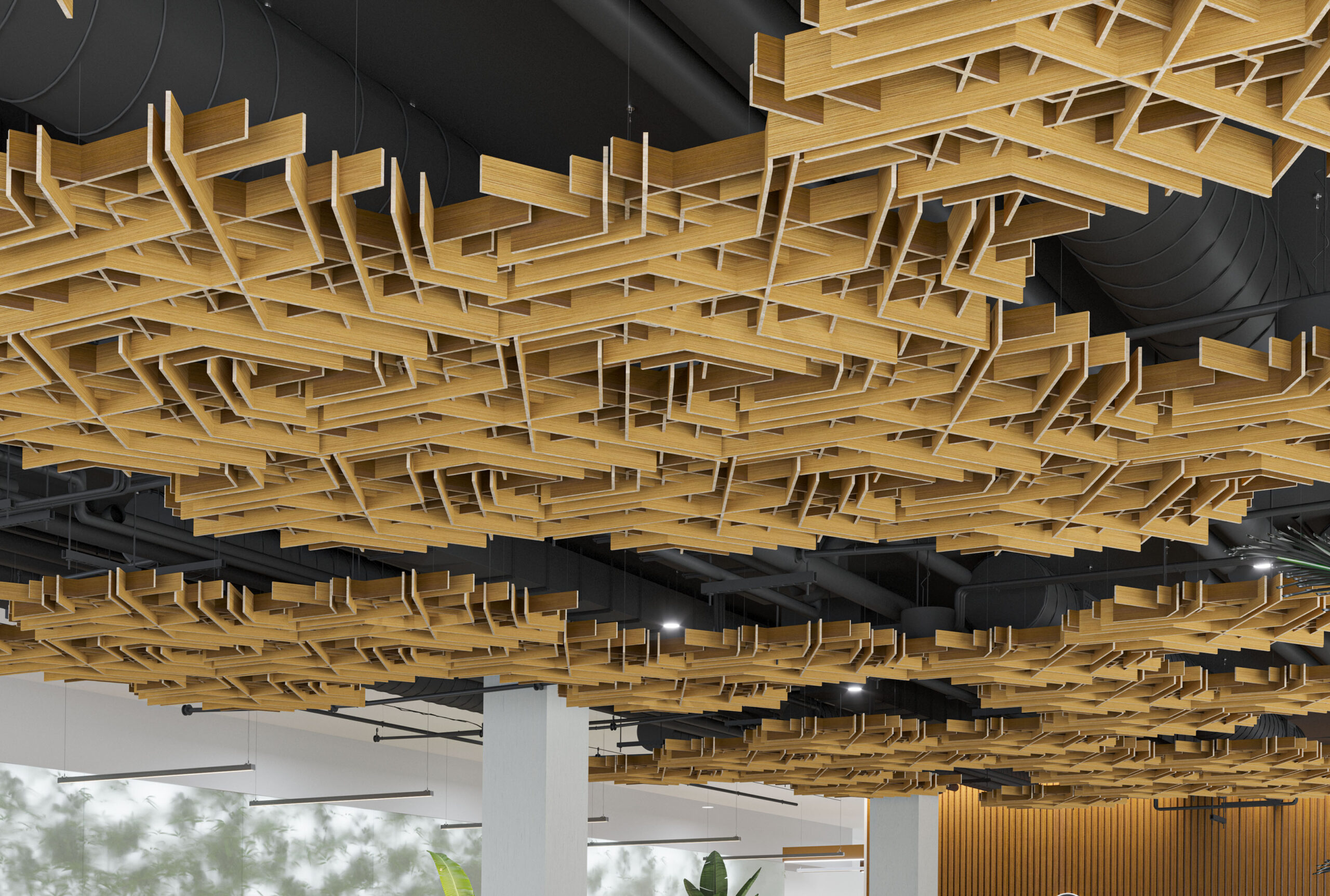 NOWN 'SoftGrid® FLUX', mekanik ve estetiği bir araya getirerek akustik performansı en üst düzeye çıkarır. Asoft™ malzemeden üretilen karmaşık panellerden oluşan bu modüller, alanınıza benzersiz bir geometrik soyutluk katarak sese olan duyarlılığı artırır. Her bir modül, ses emilimini sağlayarak sakin ve dengeli bir atmosfer yaratır.