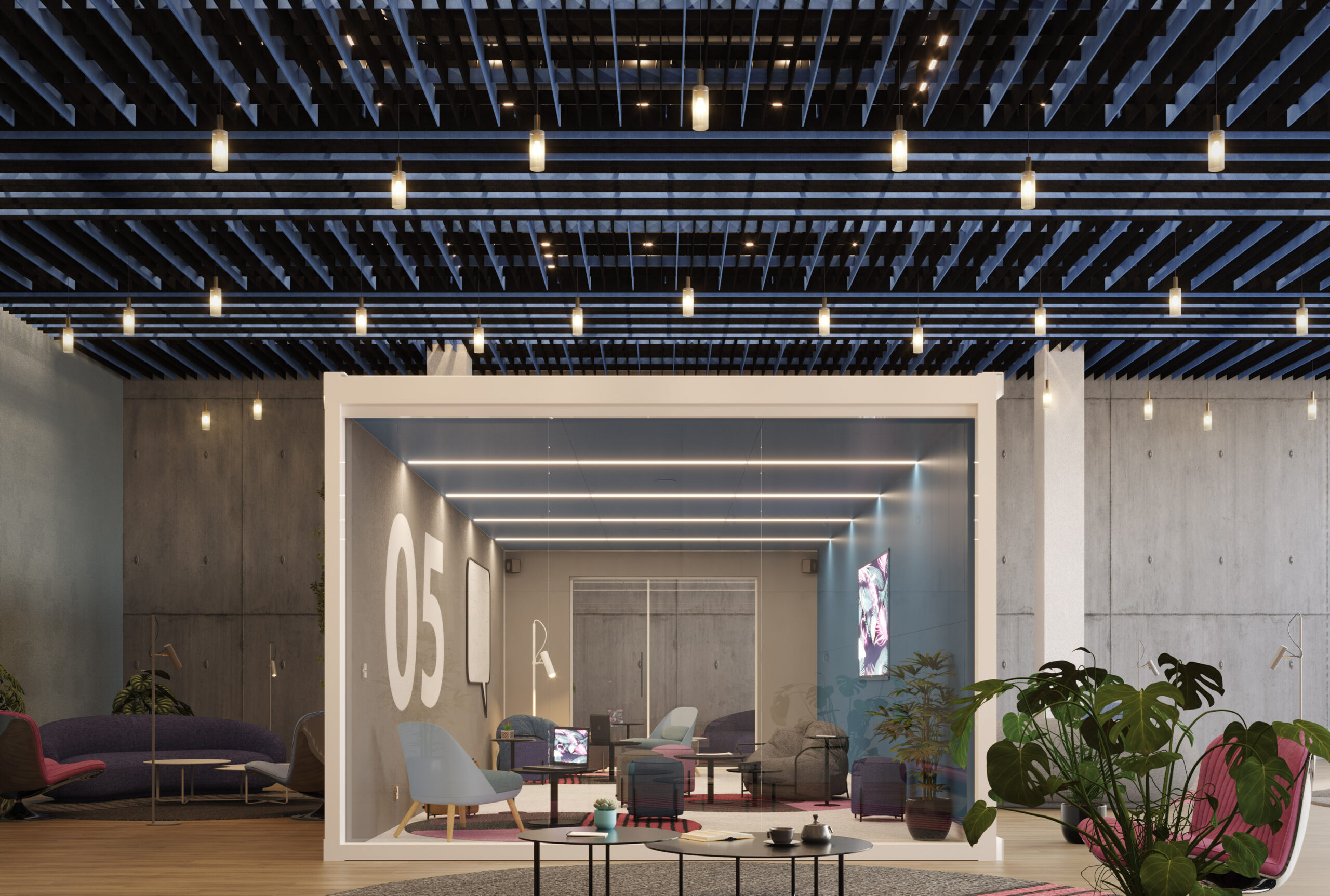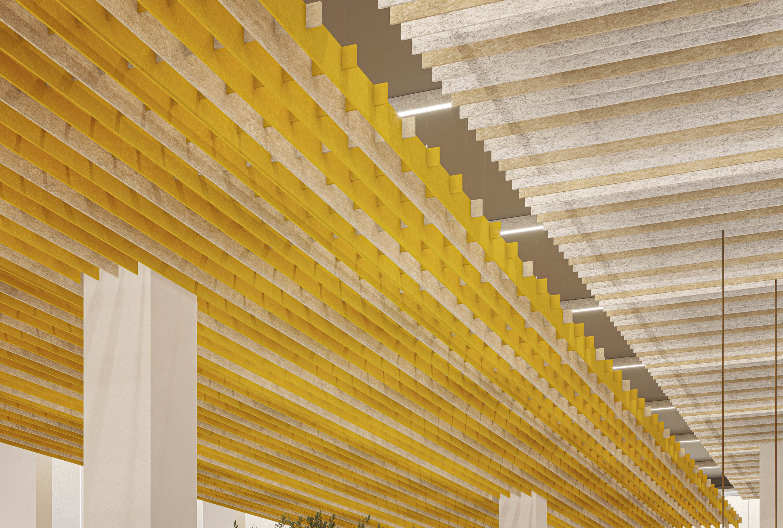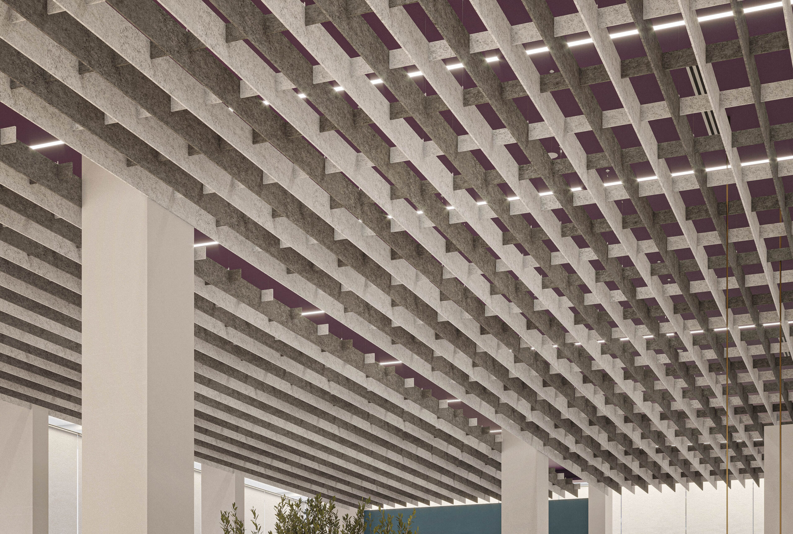 NOWN 'SoftGrid® SQUARE', akustik tavan modülleri ile tavanınızdaki alanlara şık bir çizgi tasarım kazandırın. Tamamen dikey panellerin mükemmel bir şekilde yerleştirildiği bu modüller, uzun koridorları takip edecek şekilde birleştirilebilir veya belirli bir alanda hedefli olarak kullanılabilir. Her kullanımda, Asoft™ materyali sayesinde akustik destek elde edersiniz.