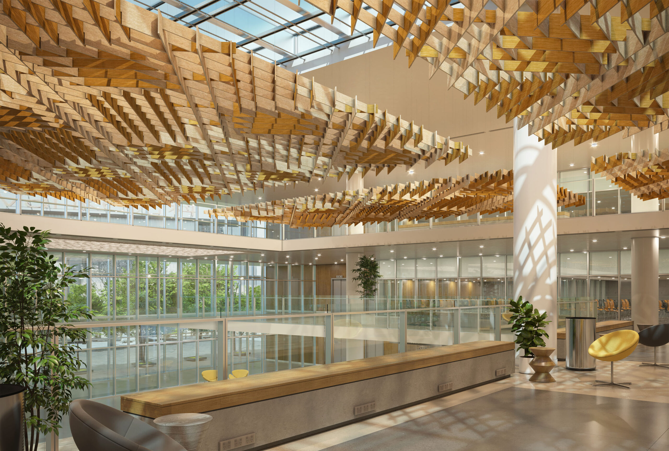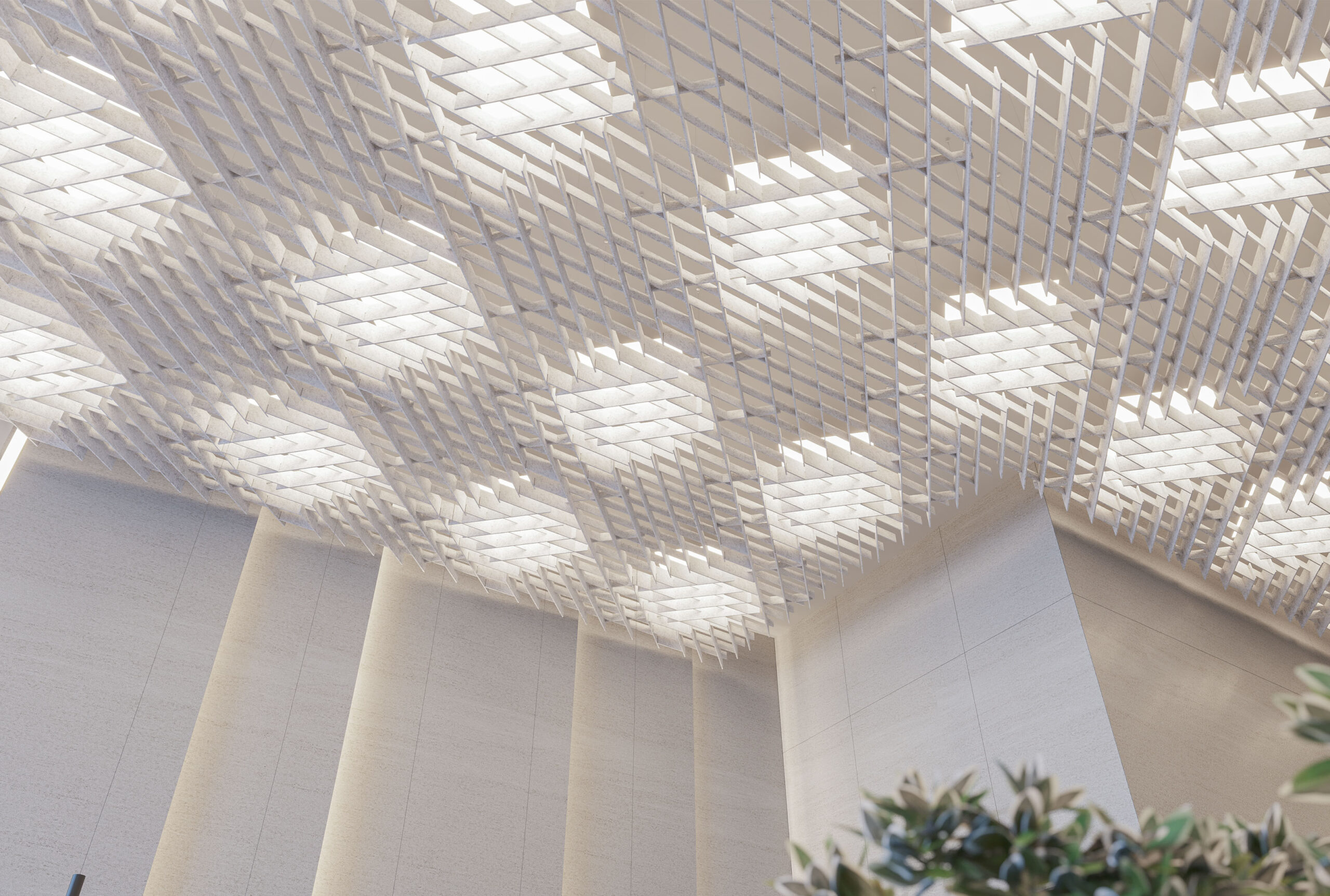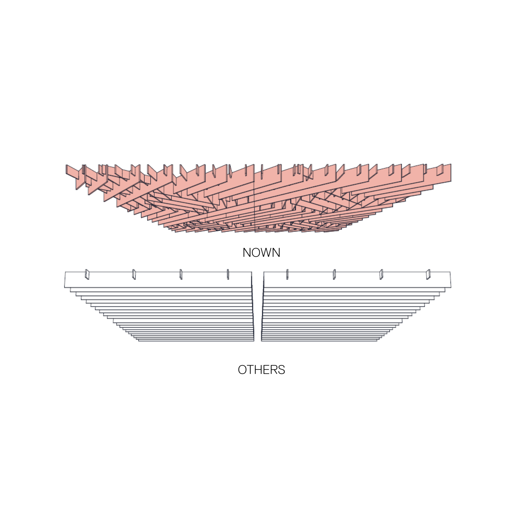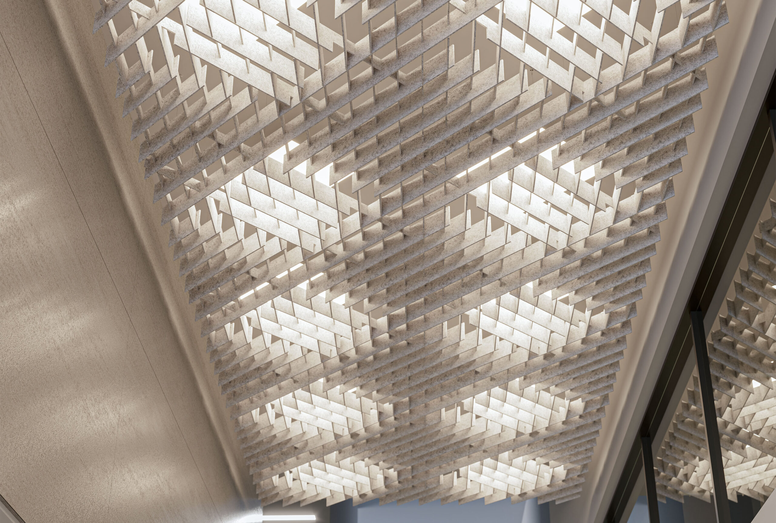 NOWN 'SoftGrid® TILT', akustik bulut sisteminin dinamik bir tasarımı ile mekanınıza modern bir dokunuş katıyor. Dik açılı akustik kanatlar, parke döşemeyi andıran çok yönlü slat tasarımıyla, hem estetik hem de fonksiyonellik sunarak ses yalıtımında üst düzey bir performans sağlar.