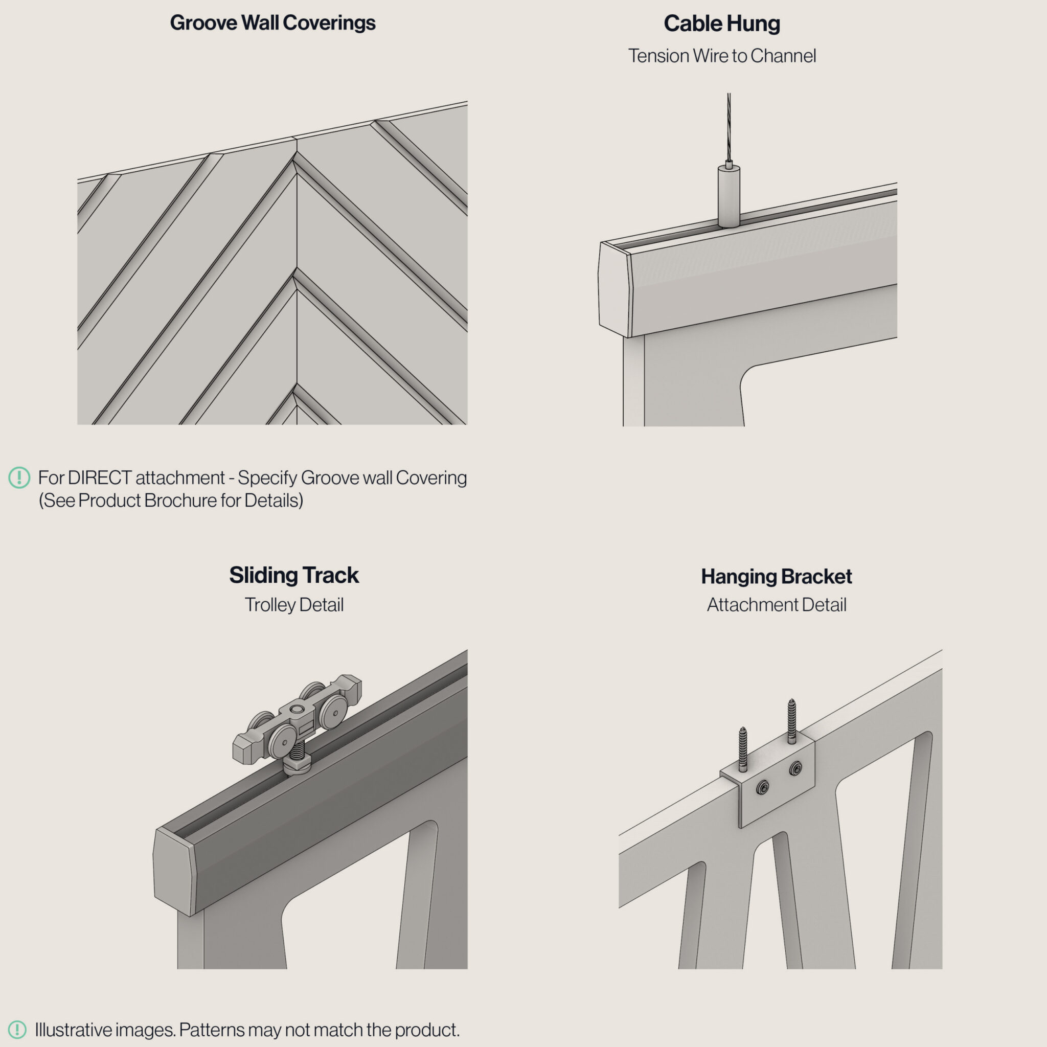 SoftScreen® FREQUENCY, akustik panelleri ve bölmeleri ile dijital dünyayı gerçeğe dönüştürüyor. Yoğun bir başlangıçla azalan tasarımı sayesinde göz alıcı dinamik desenler yaratabilirsiniz. Mekânınıza uygun şekilde Asma Braket, Kablo Askı, Kaydırma Rayı ve Doğrudan Montaj yöntemlerinden birini seçebilirsiniz. Hangi şekilde monte edilirlerse edilsin, Soft Sound malzemesi sayesinde ihtiyaç duyduğunuz yerde hedeflenmiş ses kontrolü sağlarlar.