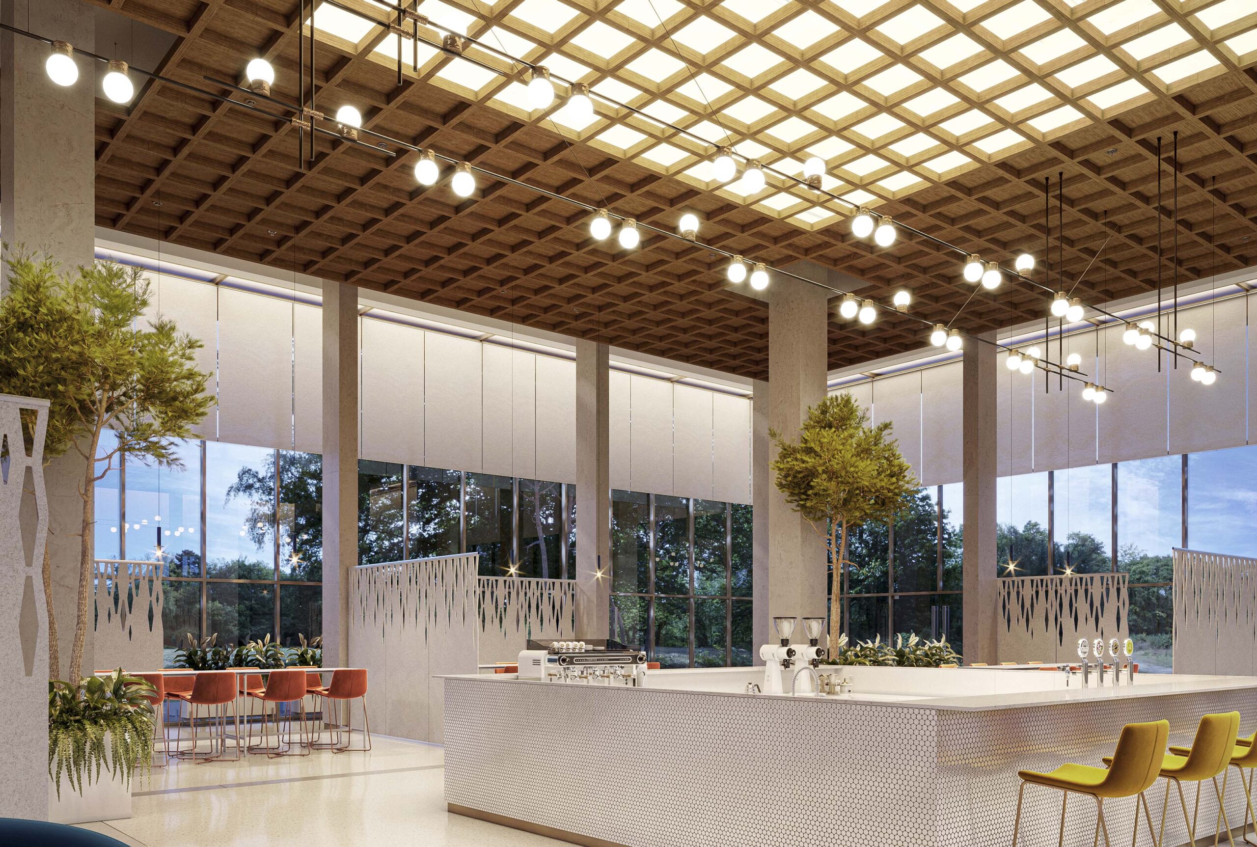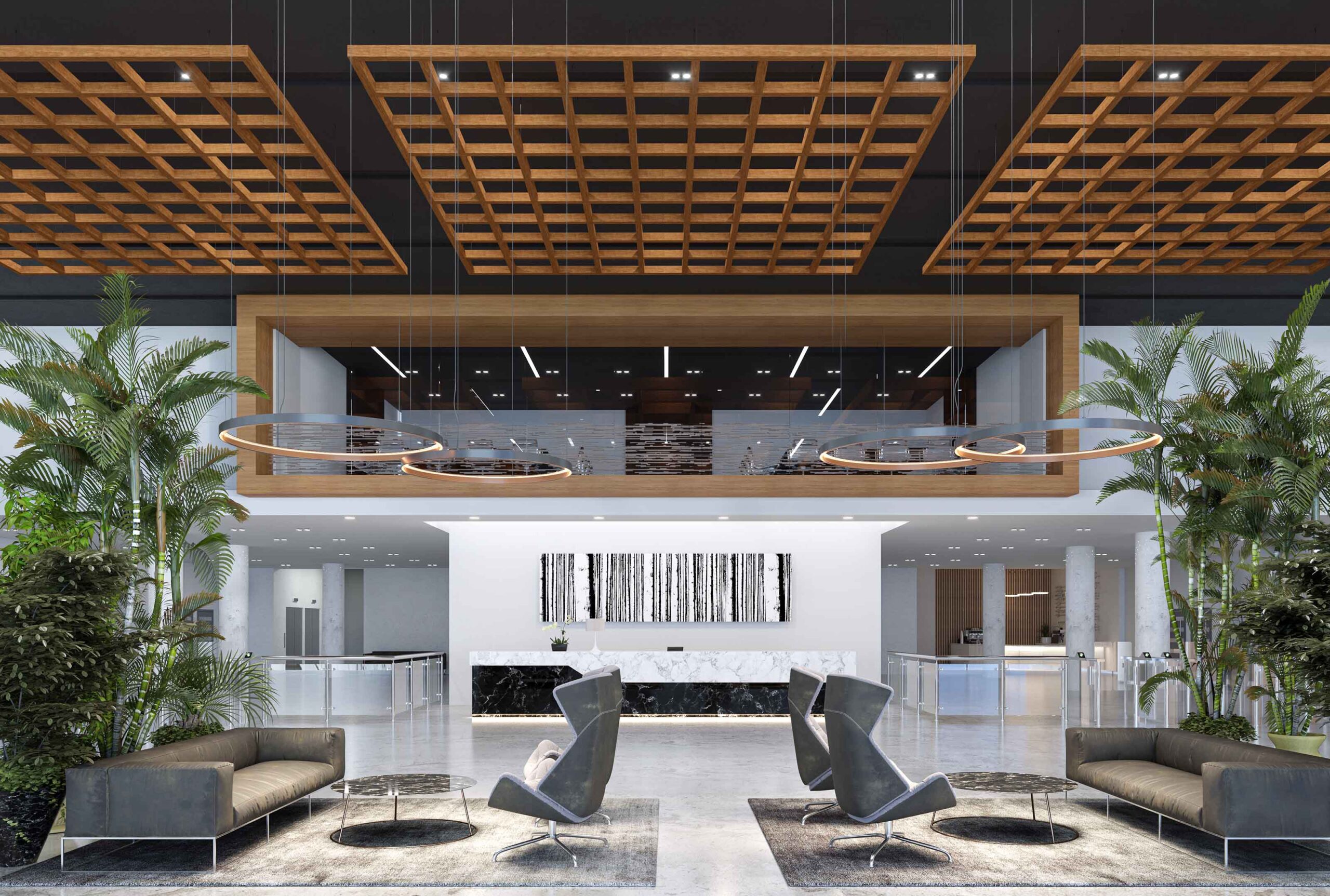SoftSpan® 24, NOWN'un yenilikçi tavan baffle sistemi, mekanlara estetik bir dokunuş katarken, ağır yükler taşımadan yakın ızgara formatında tavan görünümleri sunar. Bu sistem, akustik iyileştirmeleri ile gürültü etkisini azaltarak iç mekan konforunu artırır.